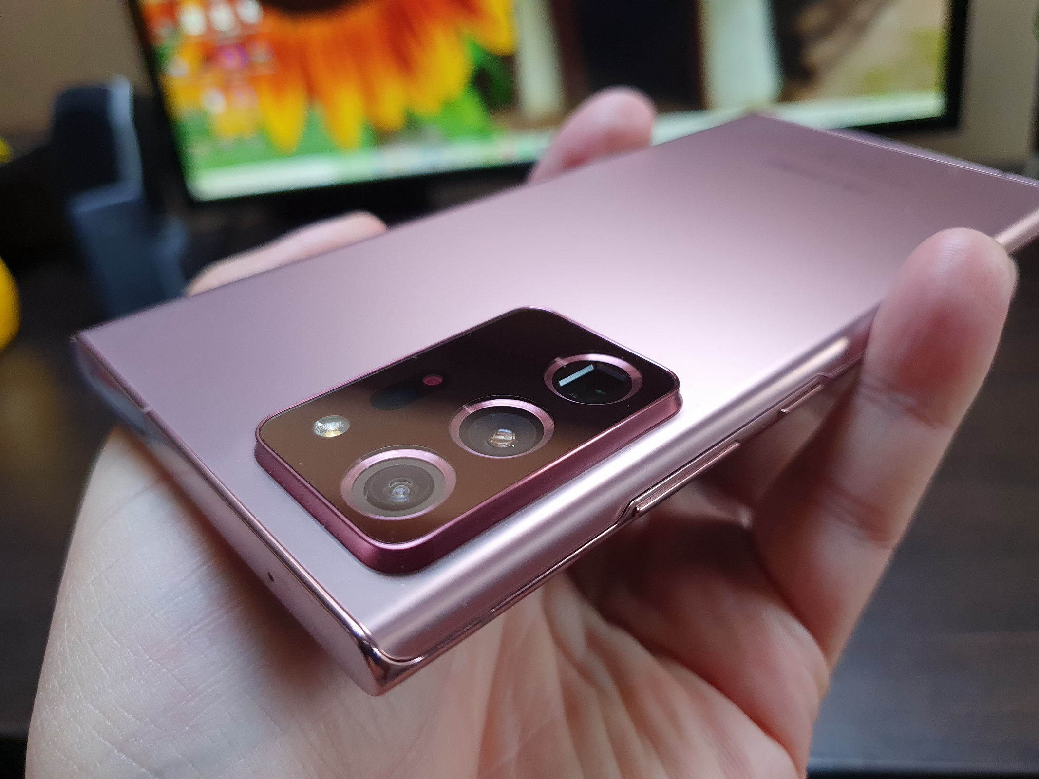 M-am înţeles mult mai bine cu acest format decât cu Galaxy S20 Ultra sau chiar cu Note 10+. Ecranul este uşor curbat, dar departe de orice concept de "ecran cascadă", iar spatele e şi el uşor curbat. Angularitatea domina totuşi acest design industrial, lucru reflectat de zona de sus şi jos, ambele plate, camera angulară şi în general senzaţia că ţii un obiect cu multe linii drepte în mână. Mă bucur că Samsung a ascultat de public şi a mutat înapoi butoanele fizice în dreapta, după ce au fost incomode pe Note 10 în stânga.