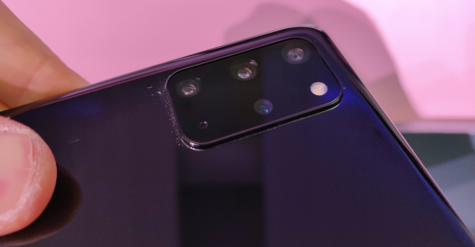 Am pus Galaxy S20 şi Galaxy S20+ unul lângă altul şi aş spune că diferenţa dintre ele nu e chiar uriaşă. Galaxy S20+ e destul de uşor de mânuit, datorită ramei subţiri şi a aderenței bune. Spatele atrage ceva amprente, dar nu foarte rău. E interesant cum a reuşit Samsung să taie din muchii, dar fără să le curbeze excesiv. Acolo unde unele companii au adus ecrane cascadă, Samsung a dat înapoi şi a mers înapoi spre un ecran mai plat, fără curbură să te distragă la jocuri şi filme (gamerii chiar s-au plâns de asta în trecut).
