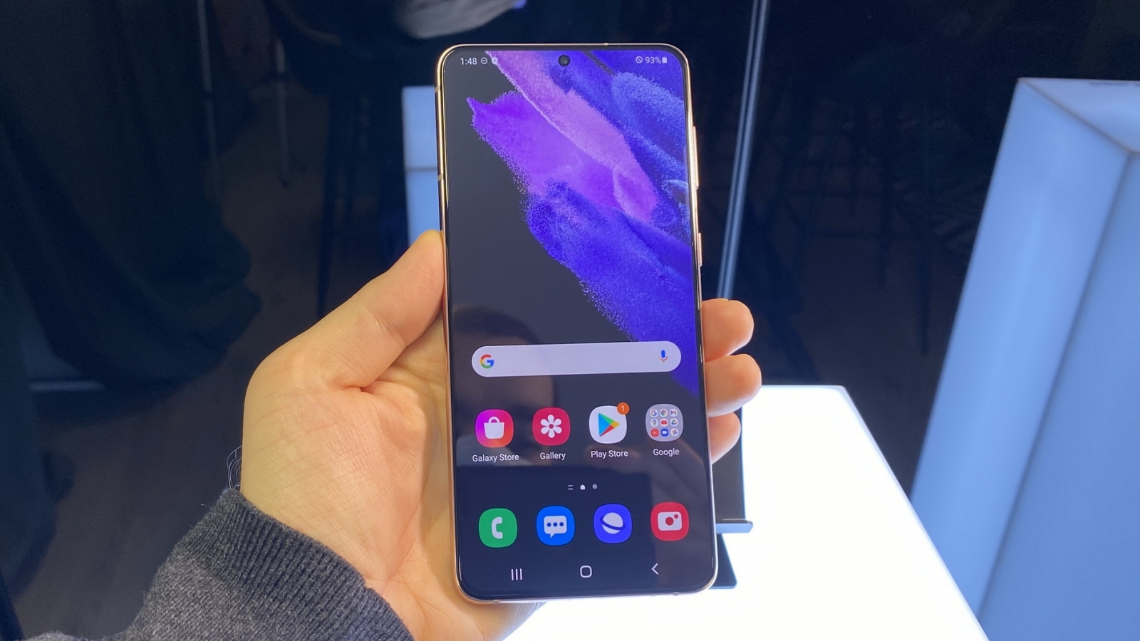 Apropo, ecranul este complet plat, nu are curburi. Nu aş zice că muchiile sunt mai înguste decât la S20+, ci tot pe acolo. Aparent luminozitatea trece de 1000 de nits şi avem şi un Eye Comfort shield, care reduce emisia de lumină albastră, care oboseşte ochii şi le provoacă daune.