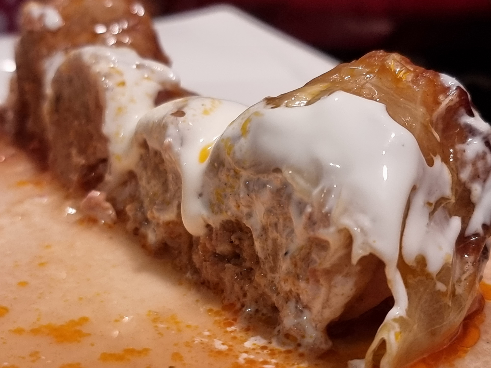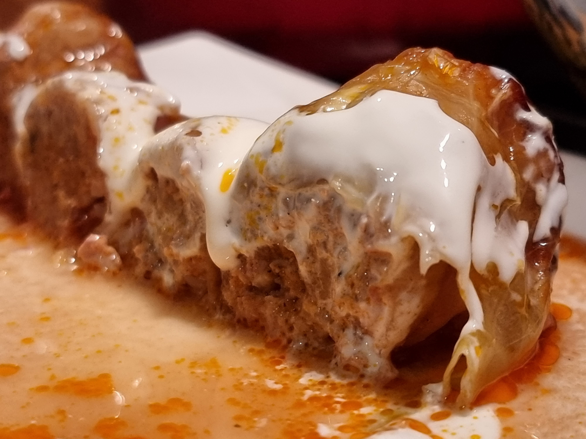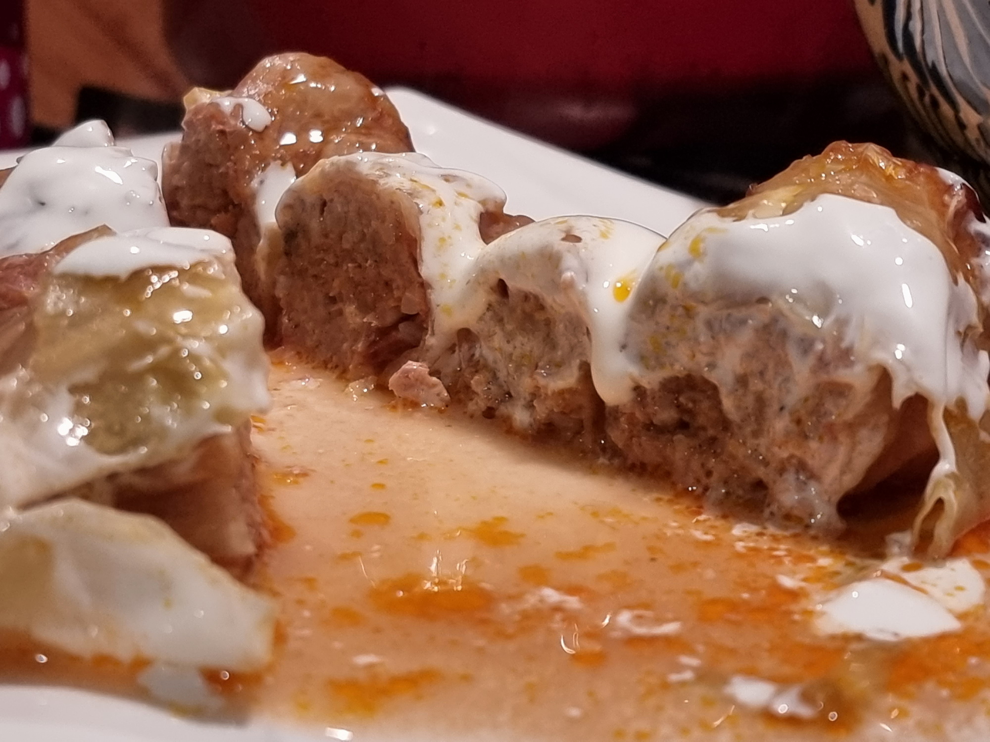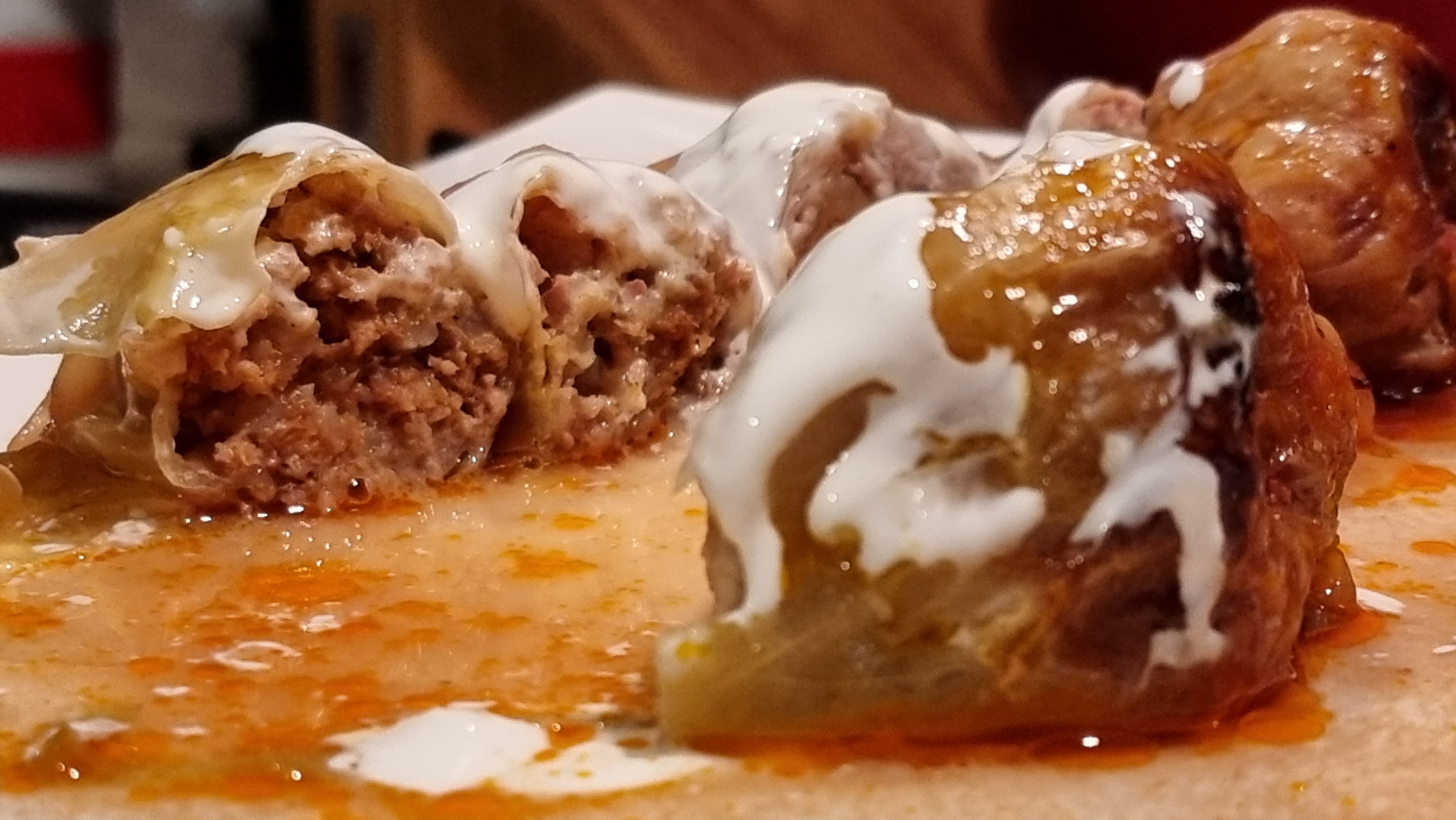 Or fi ele doar sarmale cu bacon, dar arată al naibii de apetisant. Culoarea e fix ce trebuie, cu roşiaticul bulionului, zone mai rumenite de bacon şi varza, straturi peste straturi de carne, orez, ulterior tăiate în două cum a despicat Moise mările şi inundate cu smântână. Până şi banală sârmă a devenit o vedetă bună de Instagram. Samsung rămâne aş la food photo. Singurul neajuns ar fi focalizarea pe unele cadre foarte apropiate să zicem.