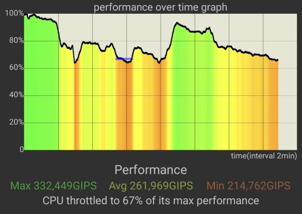 La testul de throttling a pierdut 33% din performanţă, ceea ce nu e groaznic, dar nici foarte bine. E cam la același nivel cu Galaxy S24, S24+ și nici nu sare departe de predecesor. Ce-i drept, diferențele dintre Exynos 2400 și 2400e sunt minime, doar frecvența nucleului de bază fiind ușor crescută în acest caz.
