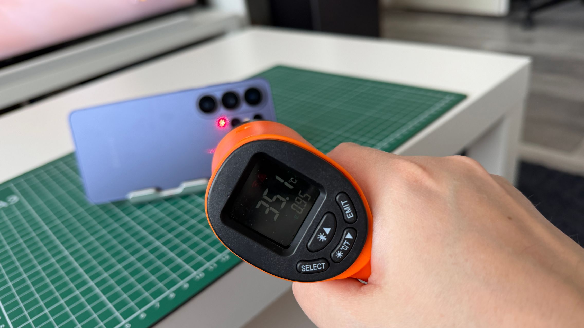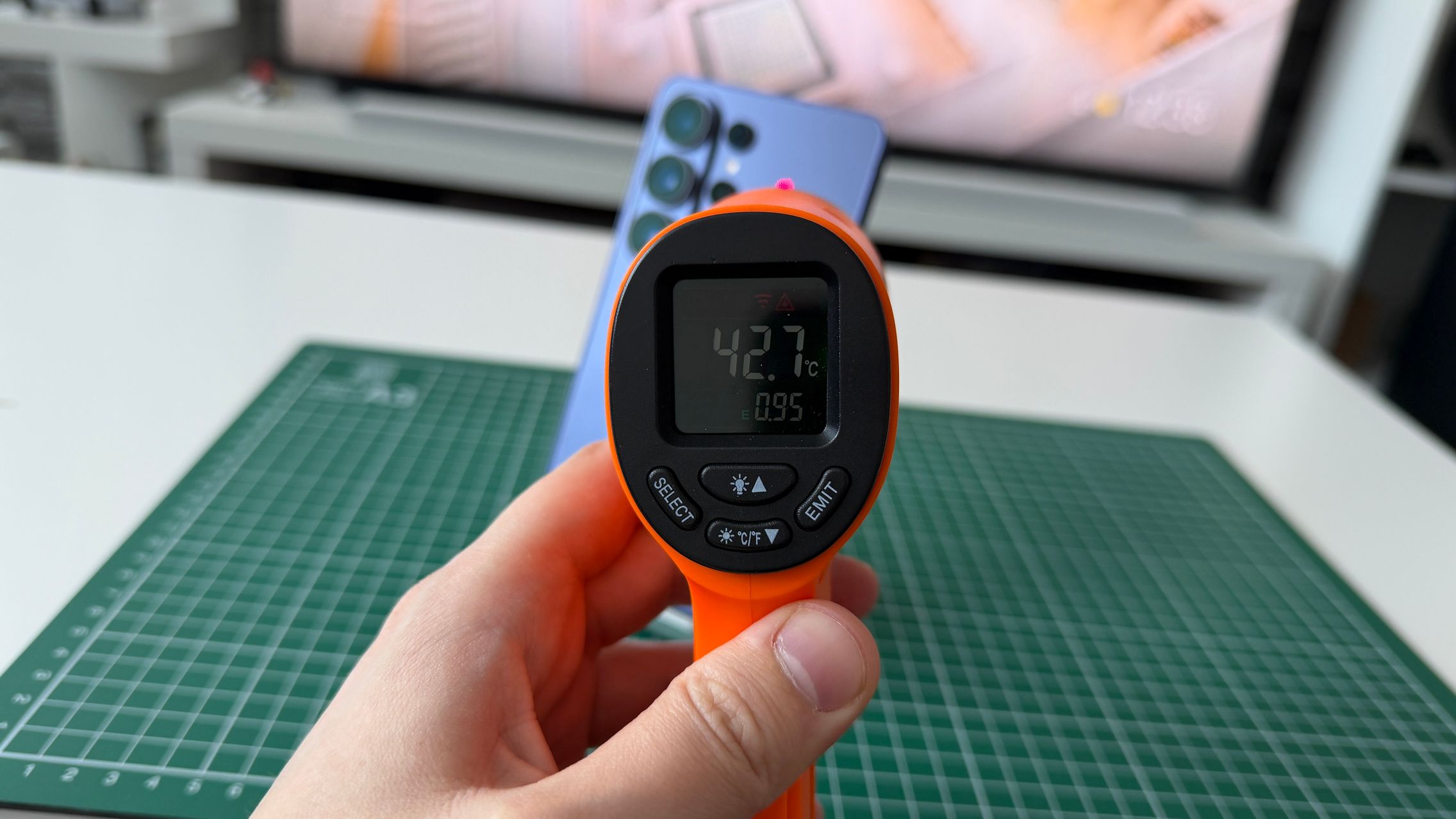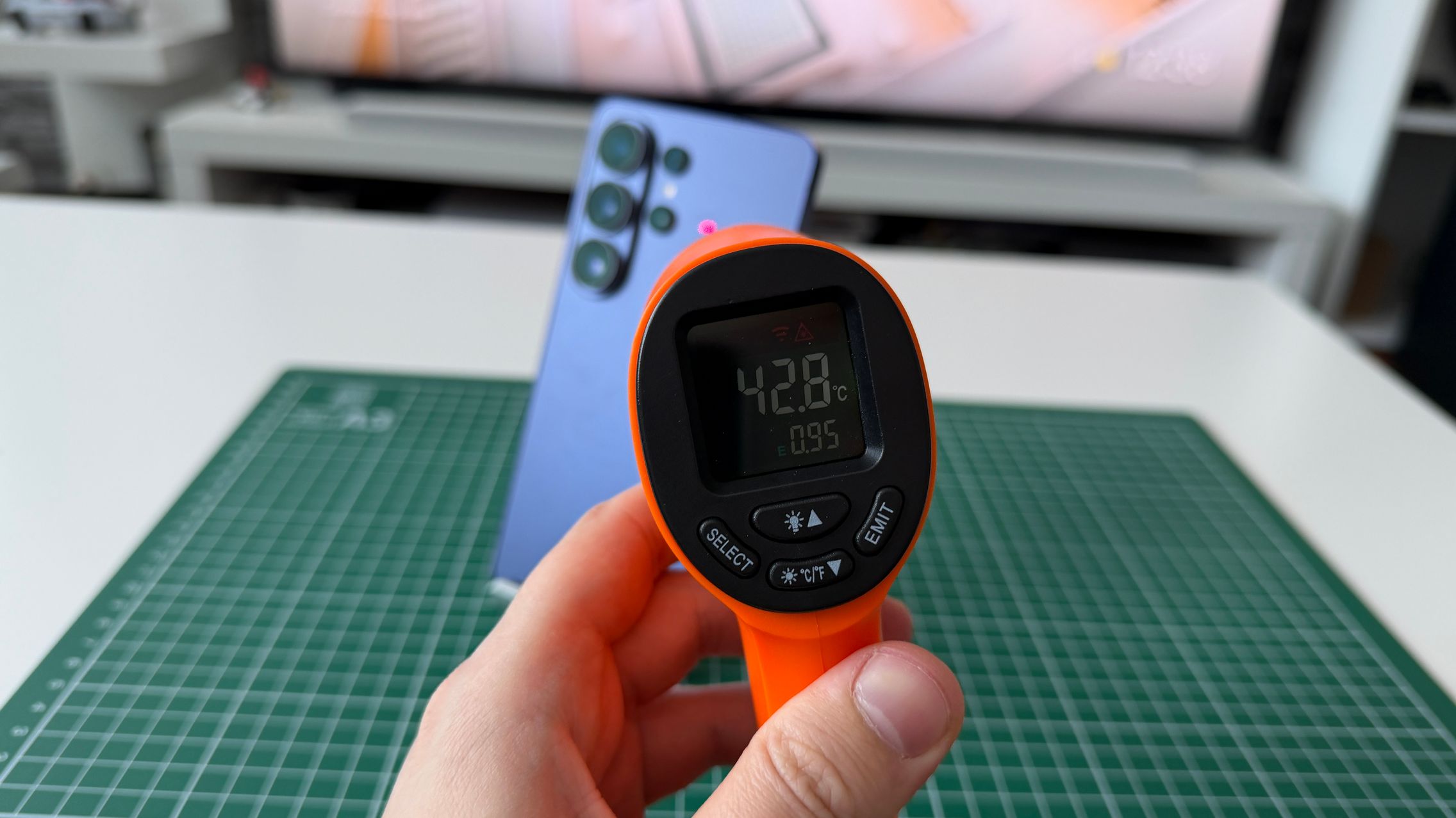 Ca temperaturi, acolo unde S25 Ultra urca pe la 43.8 grade Celsius după acest benchmark, S26 Ultra a fost cu un grad mai jos, dar s-a simțit cald la atingere. Aluminiul, rama, ajută la disiparea mai rapidă a căldurii și se cumințește rapid.