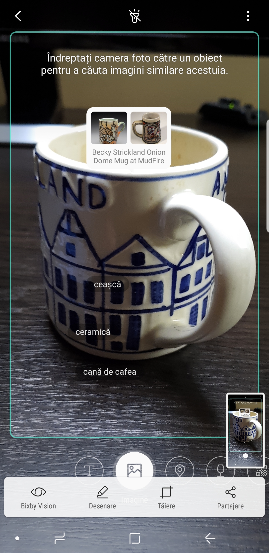 Continuăm lista cu Food şi Panoramă, există şi HDR şi tracking autofocus. Camera selfie aduce opţiuni de culoare şi tonalitate a pielii, cu slidere. Bixby Vision este la rândul său integrat aici, putând traduce text în timp real (nu chiar aşa rapid cum ai crede, dar precis), identifica imagini (da şi greş uneori) şi posibilitatea de a afla câte calorii are o mâncare, a găsi soiuri de vin şi citi coduri QR, sau identifica locaţii pe hartă.