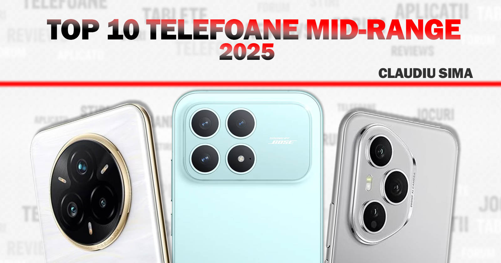 Nu am uitat de telefoanele mid-range, astfel că v-am pregătit și un top 10 din această categorie, un top personal cu telefoanele care mi-au atras atenția pe parcursul anului 2025. Unele au făcut-o prin dotări, altele prin prețuri, sau prin dimensiunile slim. Simt că este greu acum în 2025 să definești un smartphone mid-range, pentru că printre modele care se bazează pe un Snapdragon 7 să zicem, apar și flagship killere cu un secund de Snapdragon 8 Elite și e clar de partea căruia este performanța. E mai mare varietatea în acest segment, decât la flagship, cu mult mai multe opțiuni cred eu. Să vedem cum arată clasamentul meu!