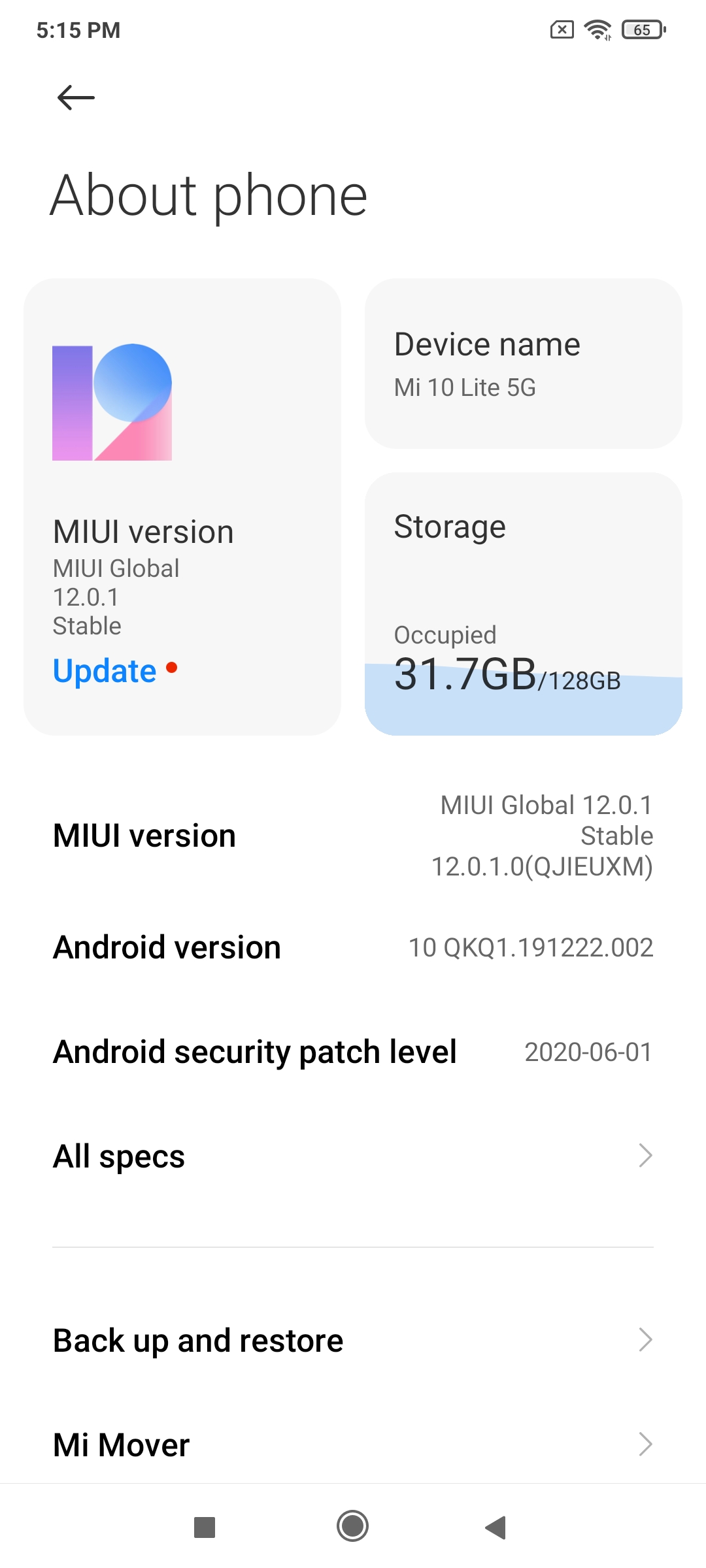 Galerie capturi de ecran Xiaomi Mi 10 Lite 5G (interfață grafică)