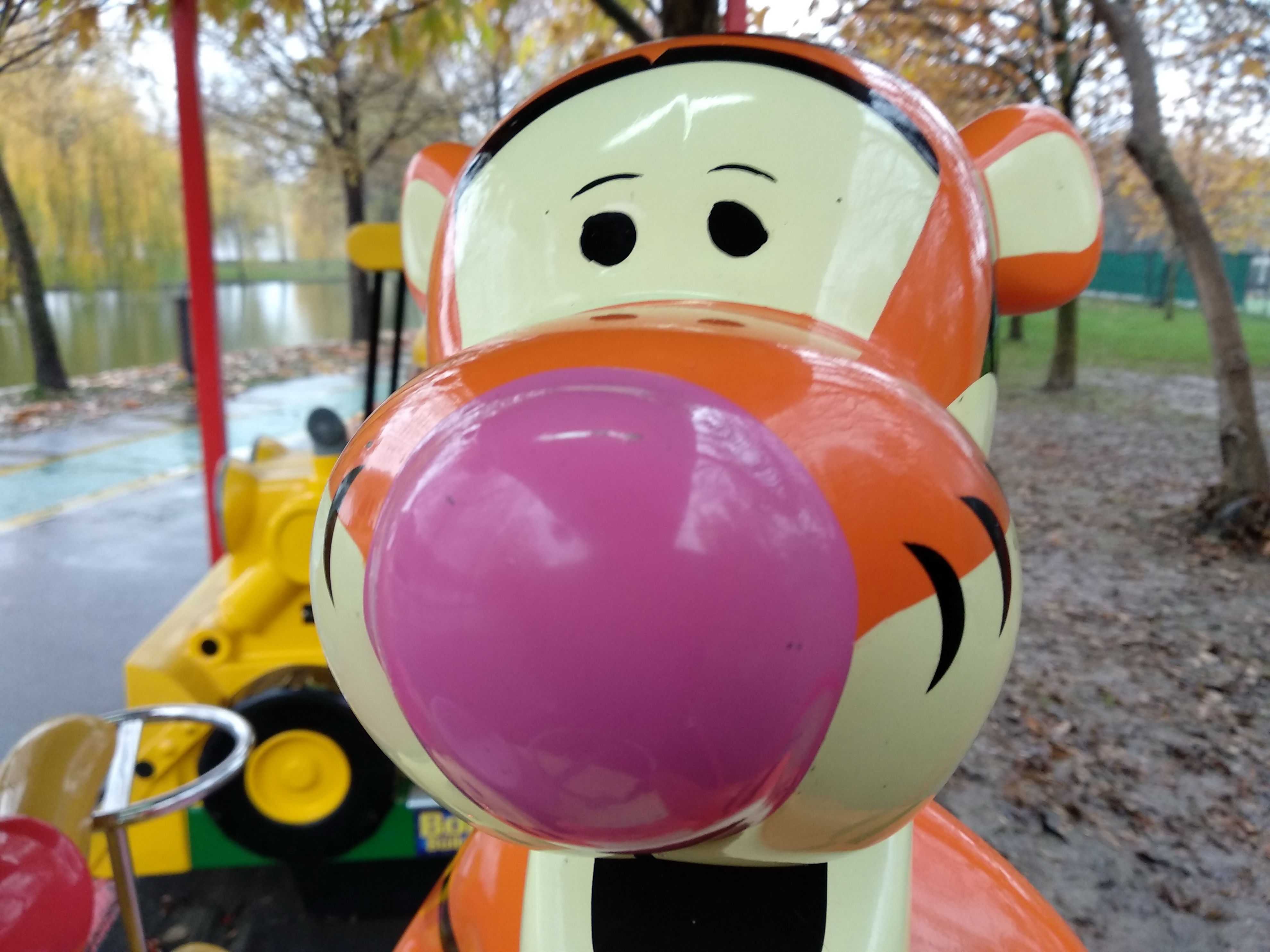 Înapoi la camera principală, fotografiile landscape nu stau rău la detalii şi am apreciat şi acel Bokeh cu jucăria cu răţoiul Donald. Nuanţele de albastru mi-au rămas pe retină, drept deosebit de bune, iar prim planurile sunt excelente mereu, fără greş. Panorama nu are o rezoluţie chiar rea, la 14.272 x 3776. Aş zice că telefonul acesta adoră lumină, iar când îl laşi fără şi îl bagi la umbră apar şi problemele.