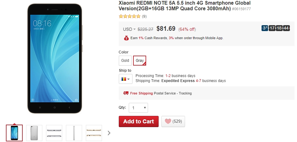 Retailerul chinez Light in the Box continuă să ne uimească prin reducerile oferite în zona smartphone și astăzi avem o sugestie de telefon numai bun pentru cei cu buget foarte mic. Din titlu aflați că este vorba despre nimeni altul decât Xiaomi Redmi Note 5A, handset care în versiunea cu 2 GB de RAM și 16 GB de stocare flash se vinde în aceste momente pentru suma de doar 81.69 dolari pe auriu sau gri.