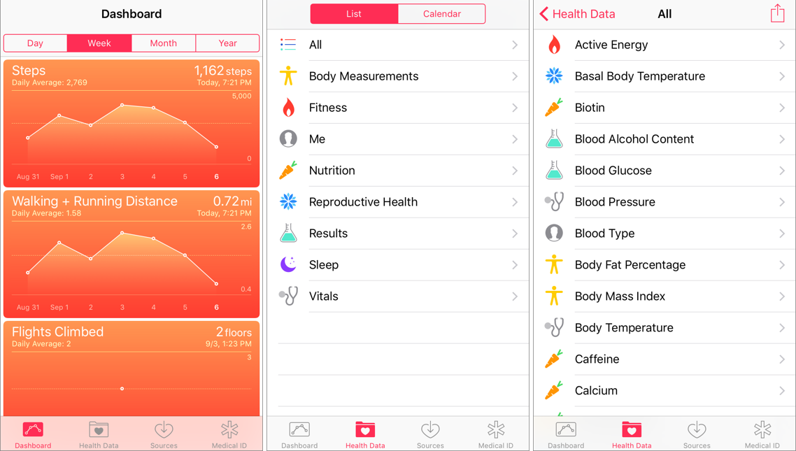 Nu mai vorbim de numărul gigantic de informaţii pe care îl stochează aplicaţia Health de pe iPhone, primind date de la glucometru, tensiometru, cântare smart şi multe, multe altele. Recent a apărut în peisaj şi ideea de a afla imediat datele medicale ale unei persoane dacă acesteia i se face rău, chiar dacă are iPhone-ul blocat. Astfel, există o opţiune specială Medical ID ce poate fi accesată foarte uşor şi dacă e ecranul blocat şi ea include informaţii despre alergii, contraindicaţii, grupa sanguină şi multe altele.