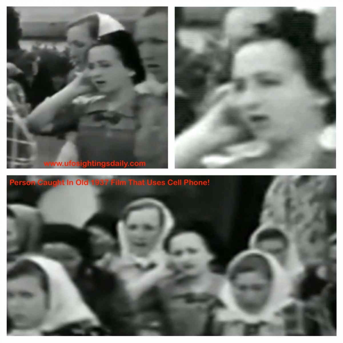 Până la urmă acel mister s-a lămurit şi era vorba de un aparat auditiv, dar cum rămâne cu filmarea din 1938 pe care o vedem mai jos, în care o femeie cu o rochie deschisă la culoare zâmbeşte la cameră şi a pare a ţine un telefon la ureche, cu decenii bune înainte de inventarea telefonului mobil.