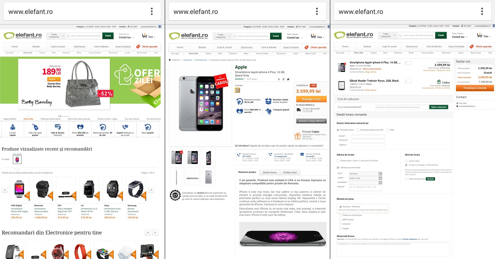 Acest lucru nu poate fi afirmat și în cazul comenzii realizate pe Elefant.ro. Celebrul site care în trecut se ocupa doar de livrarea de cărți și materiale didactice, este de ceva timp inclus și în comerțul de smartphone-uri, electronice, parfumuri, sau ceasuri. Din păcate nu avem un site optimizat pentru mobil, iar navigarea este greoaie.