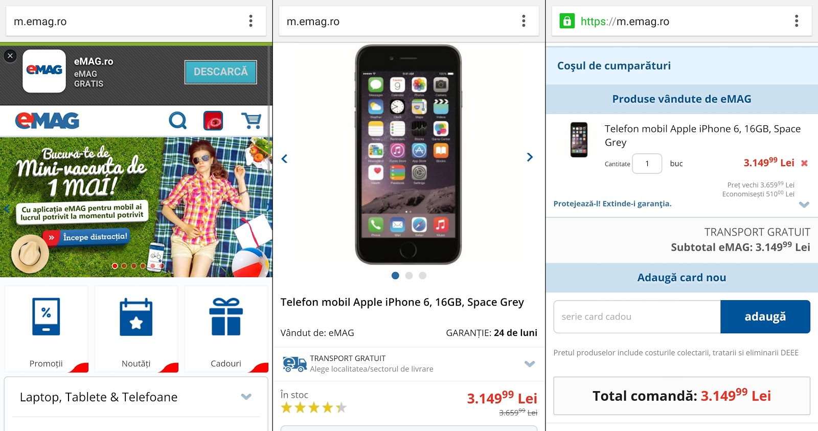 Luând în calcul faptul că deja peste 50% dintre utilizatorii unui site folosesc un terminal mobil pentru a-l naviga, ne-am hotărât să vă prezentăm astăzi un top al retailerilor locali în funcție de durata unei comenzi realizate pe smartphone. Prin acest articol avem de gând să atragem atenția și magazinelor online, unde și ce pot îmbunătăți în ceea ce privește afișarea pe mobil, modalitate prin care experiența avută de noi ca și consumatori va putea fi schimbată în mai bine.