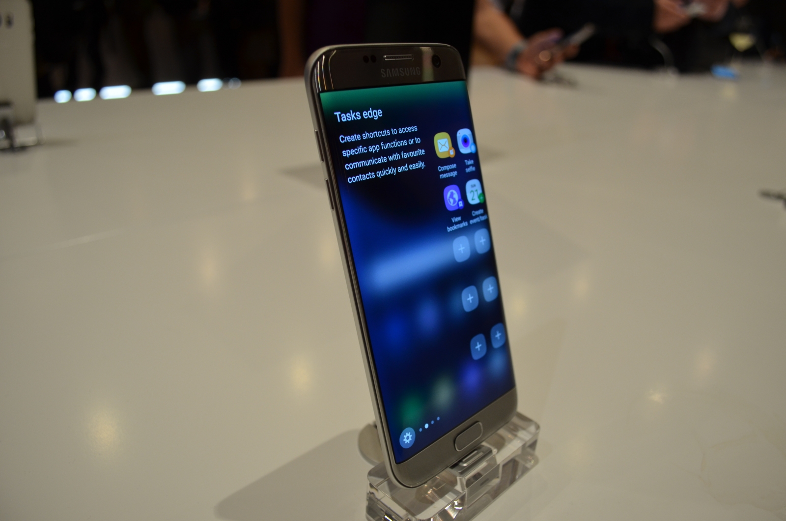 După o serie de informații despre Galaxy S7 și S7 Edge, și după discursul lui Mark Zuckerberg referitor la tehnologia VR, am pornit către zona de familiarizare cu cele două device-uri, loc de unde am pus la cale și handson-urile aferente. Dacă în materie de design, nu avem prea multe schimbări față de generația anterioară, diferențele sunt acum reprezentate de hardware.