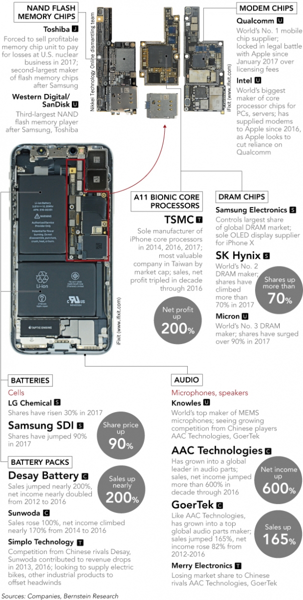 Gurile rele zic că Apple dorea de fapt panouri de ecran şi RAM mai ieftin. Anul trecut, odată cu apariţia mecanismului TrueDepth/Face ID câteva companii s-au trezit miliardare peste noapte, de la Genius şi Kantatsu (receiver) la STMicroelectronics (senzor), Viavi (filtru infraroşu), Tong Hsing (asamblare senzori), dar şi Lumentum, Finisar şi II-VI (mecanismul de proiecţie laser).
