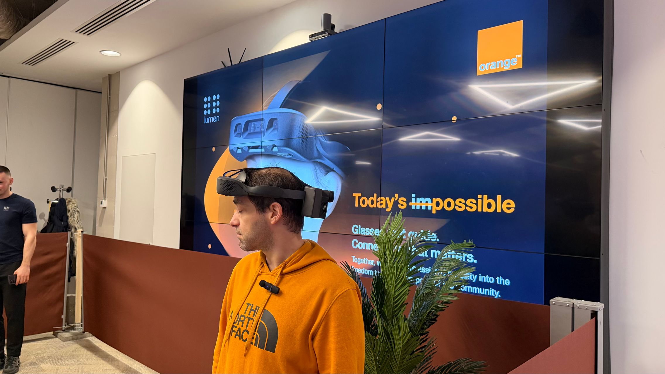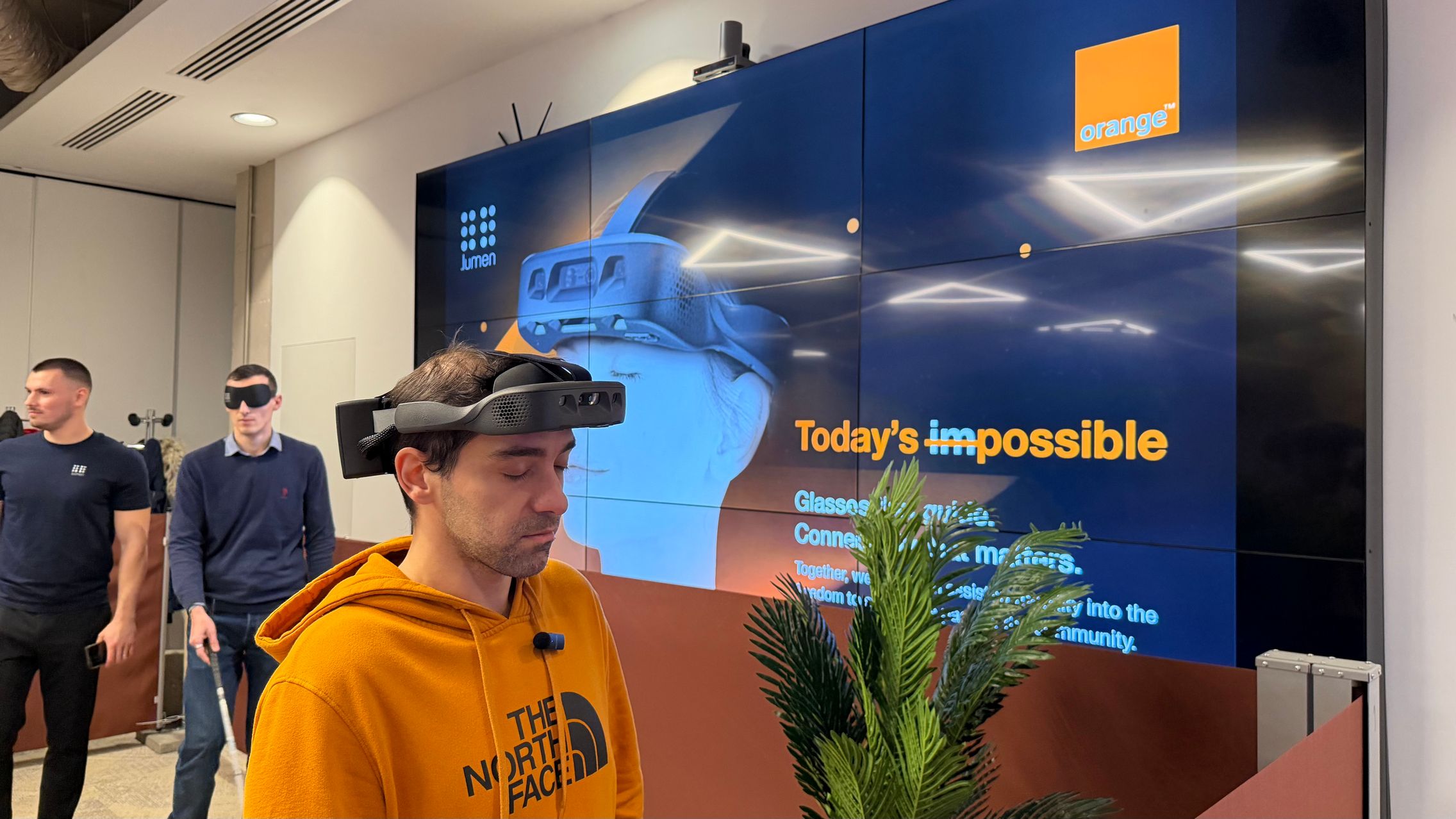 Orange România ne-a invitat pe 22 ianuarie 2026 să experimentăm ceea ce doar am văzut la CES 2026: casca Dot Lumen. Acest startup românesc, de la Cluj a creat un gadget pentru nevăzători, ţinând loc de câine-ghid şi baston