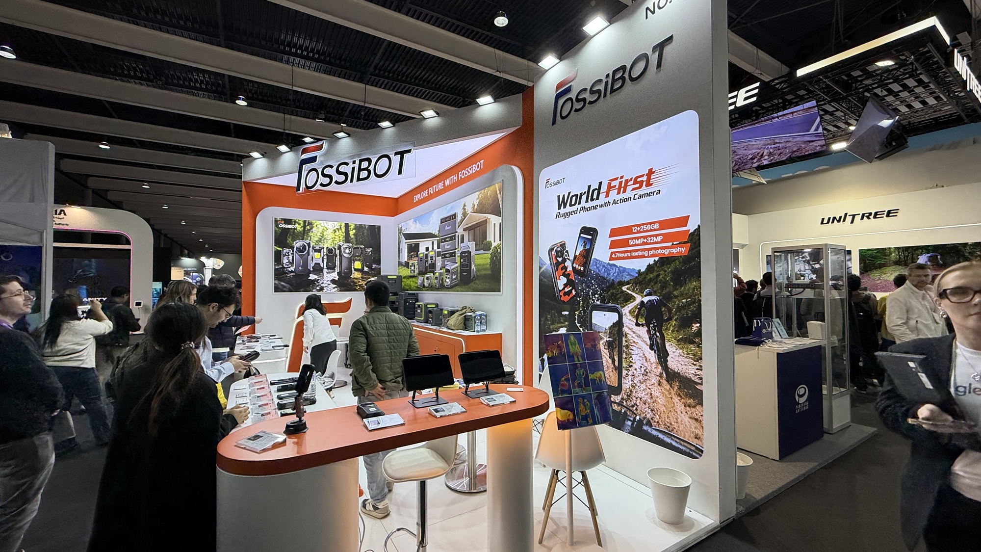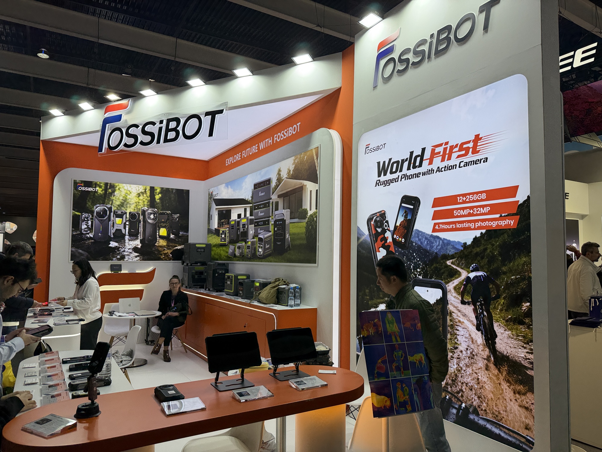 MWC 2026: Turul standului Fossibot, care face telefoane robuste, unul chiar cu cameră de acțiune integrată