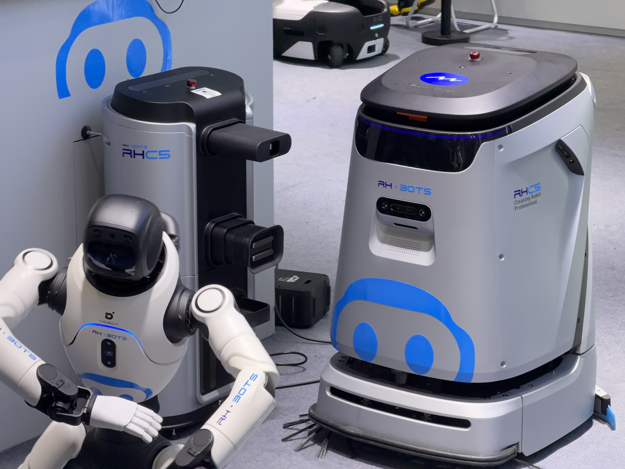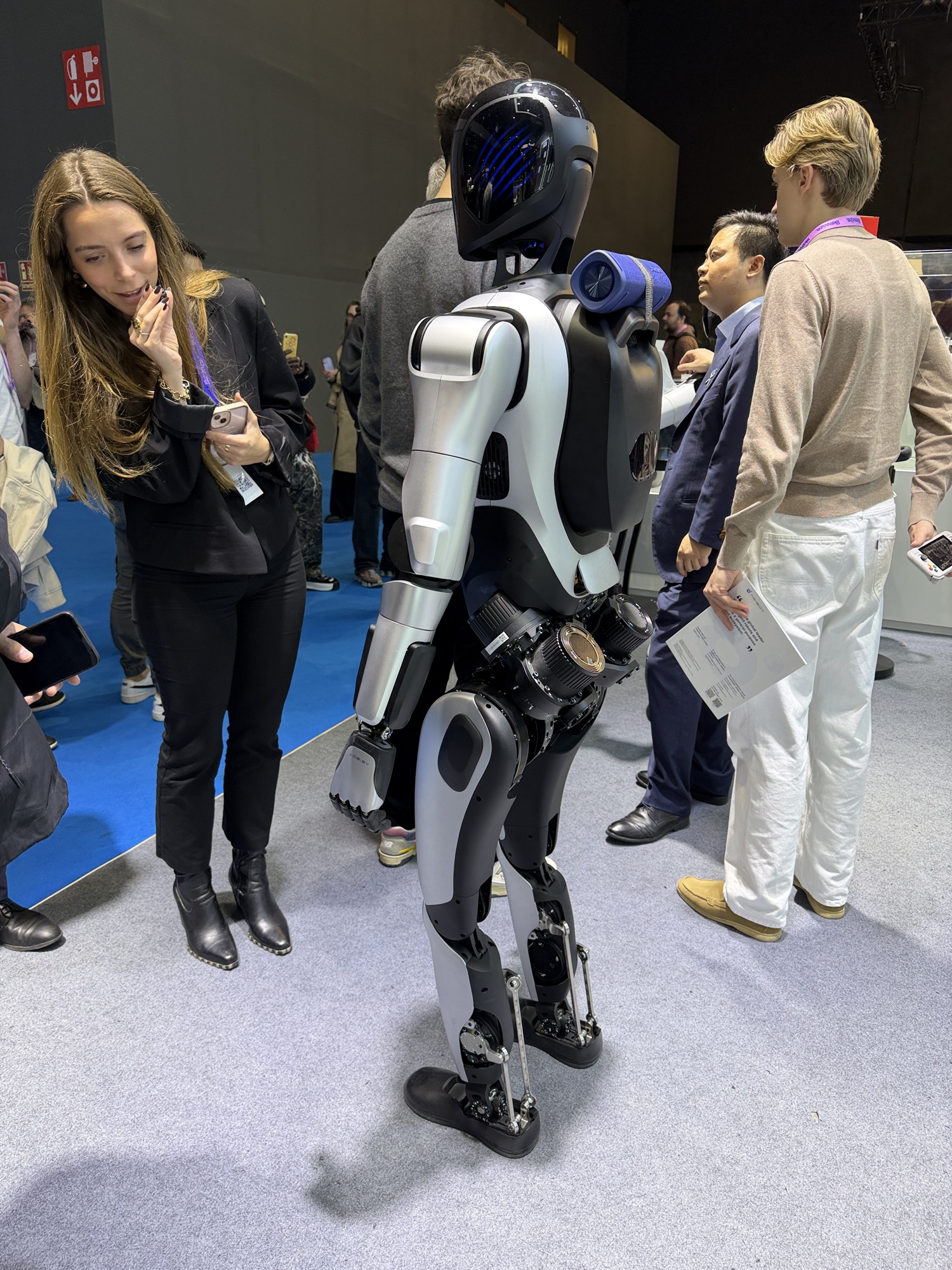 După ce am văzut boxând roboții de la Unitree, am purces la un alt stand al unei companii din China, Agibot. Ei au o varietate mare de roboți, de la industriali la comerciali, pe care îi vedeți în turul de la stand