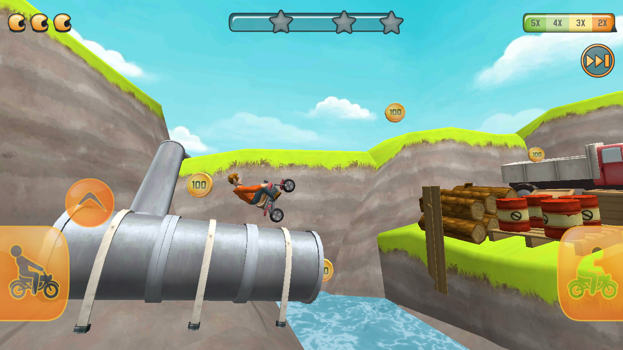 Veţi face cascadorii cu motocicleta şi cu alte vehicule şi veţi avea parte de o fizică bună în acest joc. Există zeci de nivele diferite şi fundaluri diferite şi veţi ajunge într-un mediu urban, pe plajă, în pădure sau într-un şantier, spre exemplu. Pe măsură ce progresaţi veţi aduna monede şi veţi debloca noi vehicule şi upgrade-uri pe care le puteţi cumpăra apoi.