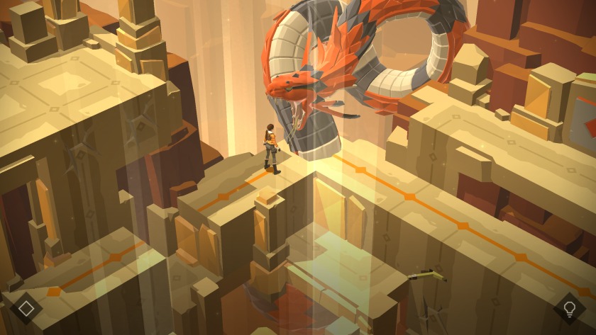 Vom aduna relicve inteligent ascunse în fundal şi vom activa butoane, platforme şi manete, care la rândul lor pun în funcţiune fierăstraie şi diferiţi monoliţi mobili. Există peste 100 de nivele aici şi va trebui să vă calculaţi cu mare grijă mutările, uneori cu 5-6 înainte chiar. Acum nu mai avem de-a face cu asasini paranoici că în Hitman Go, ci doar cu capcane, şerpi, şopârle sau şerpi, deci jocul e mai uşor puţin.