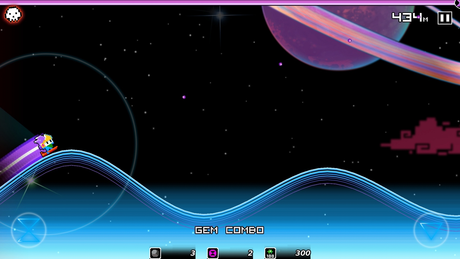 E interesantă şi navigarea, pentru că nu sărim propriu zis, ci putem doar să ne luăm avânt pe pante şi apoi să ne folosim de energia acumulată pentru a ricoşa de pe un deal pe altul. Avem şi porţiuni de tip "repede înainte" colorate în nuanţa de curcubeu şi care ne vor catapulta pe o distanţă însemnată. Gameplay-ul aminteşte şi de Sonic, nu doar de Robot Unicorn Attack. În calea noastră se află monștri, dar și țepi și gropi, fără o varietate prea mare totuşi.