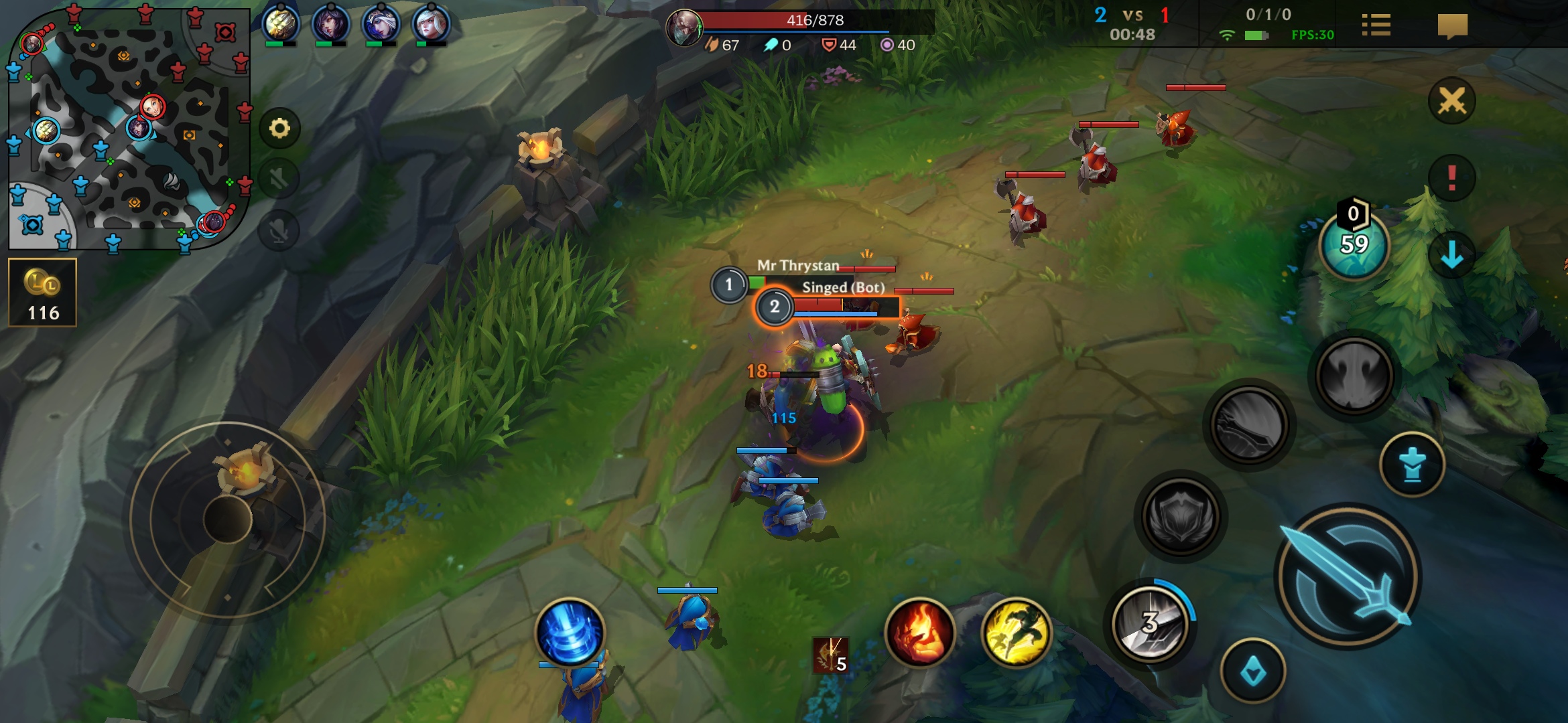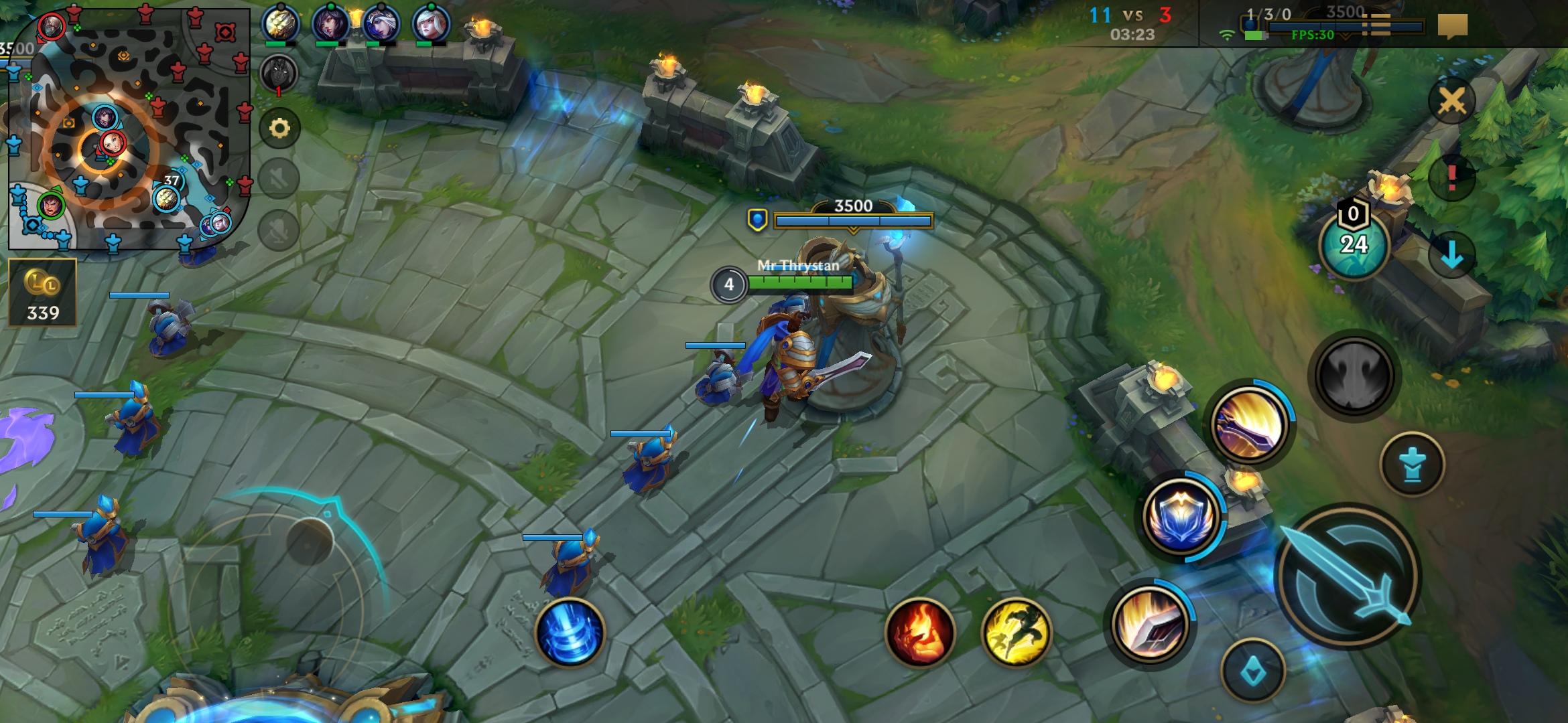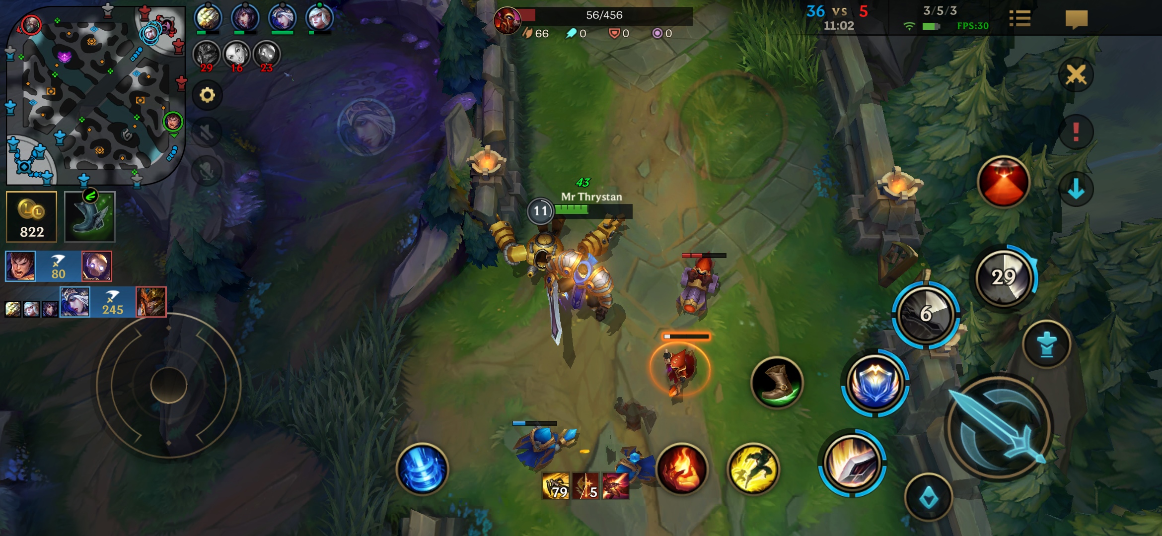 Cam acestea ar fi conceptele principale de joc. Am jucat pe parcursul sesiunii cu Garen, Tryndamere şi Master Yi. Jocul se mişcă fluid, mai ales cu grafică pe Ultra şi la 60 FPS cum am jucat eu. Campionii arată fix ca pe PC şi toate efectele dramatice sunt plăcute privirii. E puţin mai complicat pe un ecran mic şi deseori la o luptă aglomerată toţi eroii şi minionii se vor suprapune.