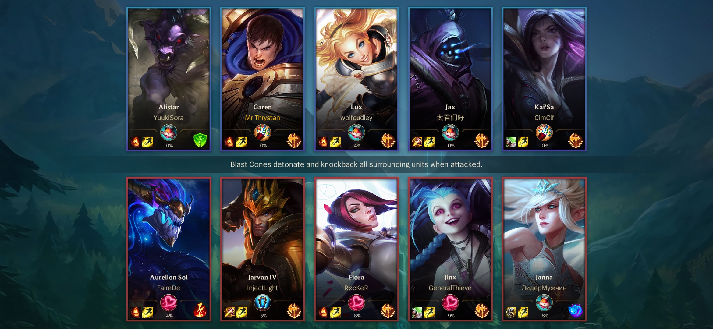 - eroii se împart în categorii: Bot, Adc (Range), Support (Mage / Tank ), Mid (Asasin/ Mag), Jungle (Tank, Asasin , Warrior), Top (Warior, Tank)