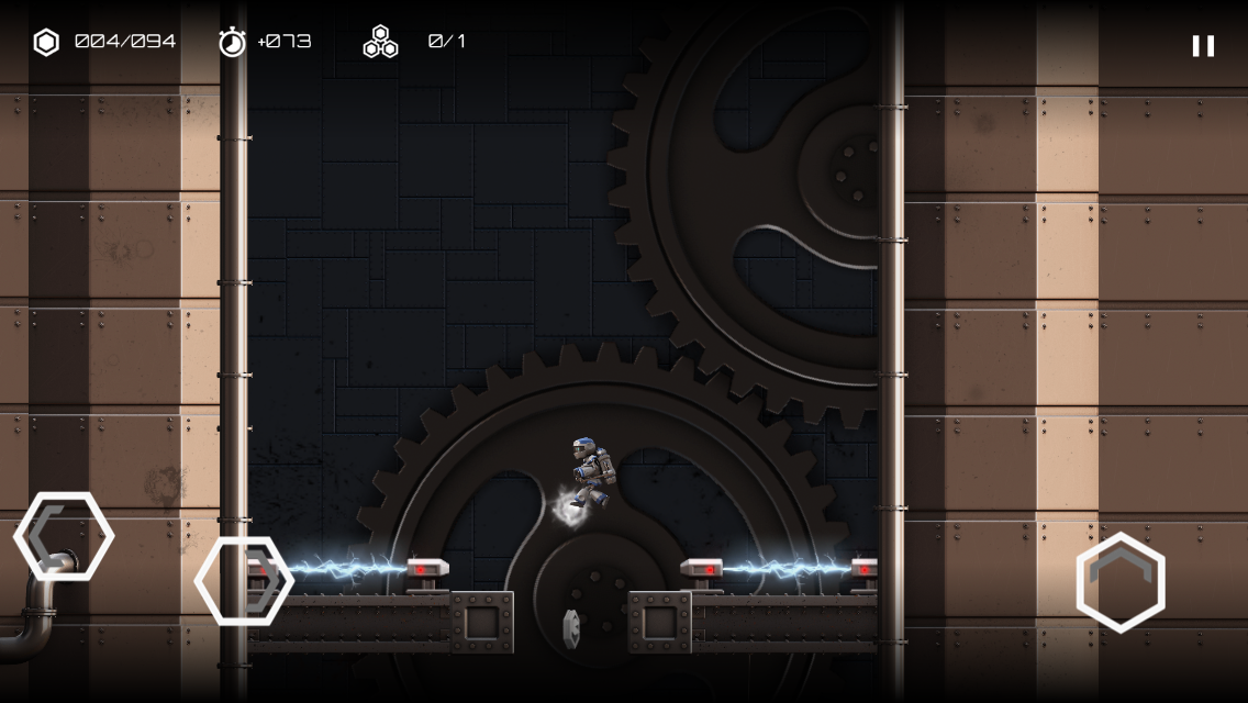 Veți putea sări, alerga, merge înainte și înapoi, împinge cutii și vestea bună e că aveți vieți infinite. Acțiunea are loc în 2264 și voi îl controlați pe Elgo, robotul anterior menționat. Atom Run e optimizat pentru ecrane Retina și are un engine de joc 2D, dar o grafică cu elemente 3D. Muzica din fundal sună excelent și a fost compusă de artistul King Q4, specializat pe muzică electronică. Mai avem și alte vești bune: jocul nu include nici reclame și nici în app purchases, ci doar divertisment pur.