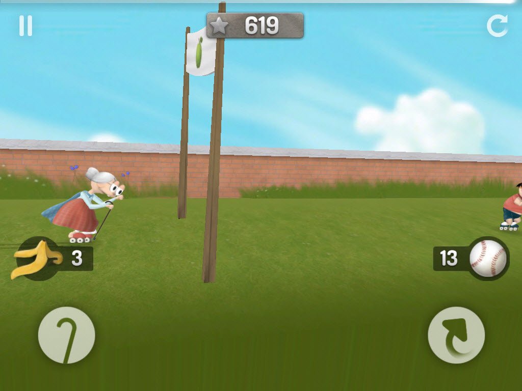 După fiecare nivel obțineți monede de aur, cu care cumpărați o cască de protecție pentru băbuța, coji de banană și mingi de baseball pentru a-l șicana pe hoț sau chiar și 2 personaje noi. Controlul este foarte simplu: aveți un buton pentru baston în partea stângă și unul pentru sărituri în partea dreaptă. îi dăm jocului nota 9.5 din 10 și îl puteți descărca de aici.