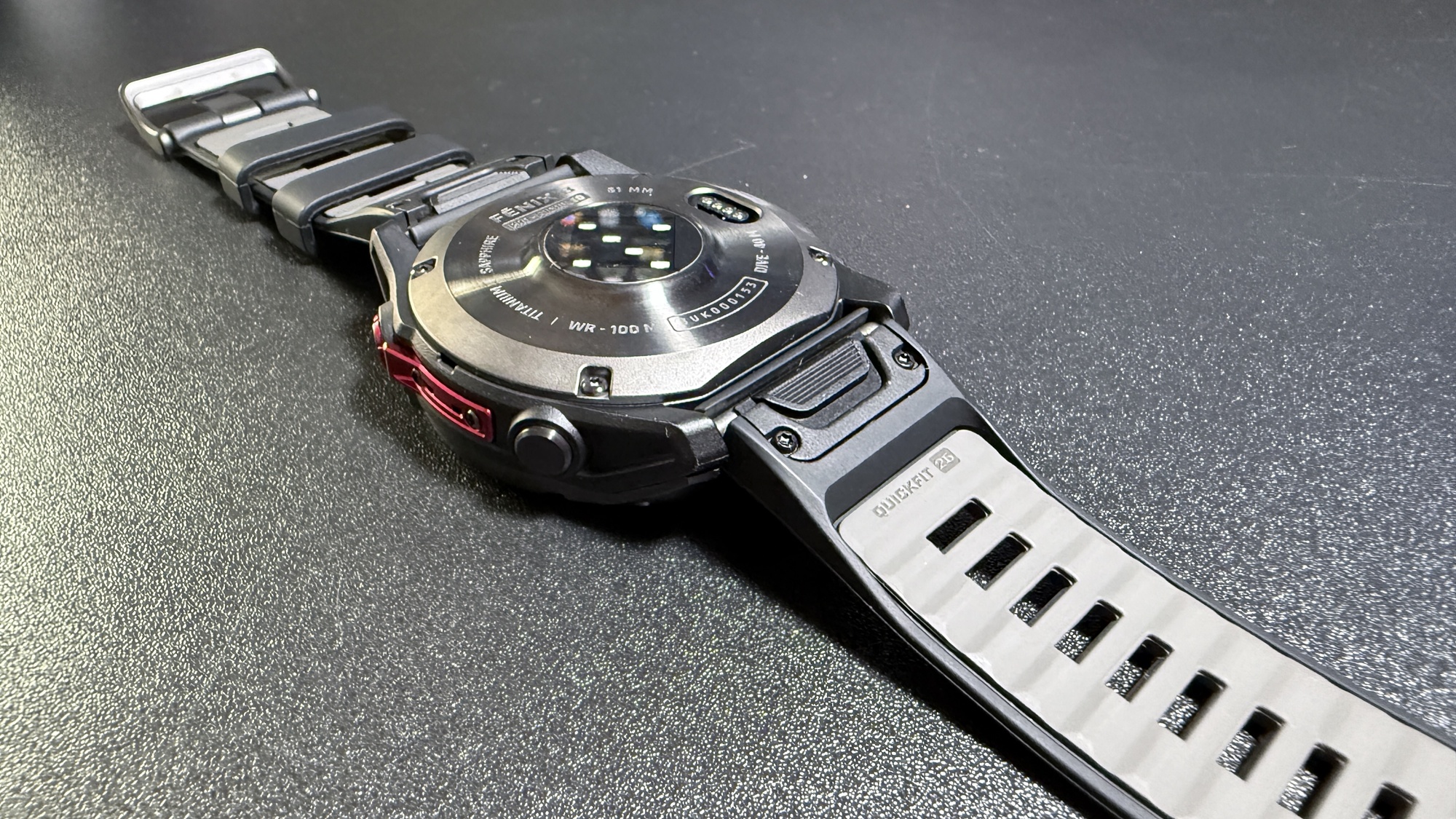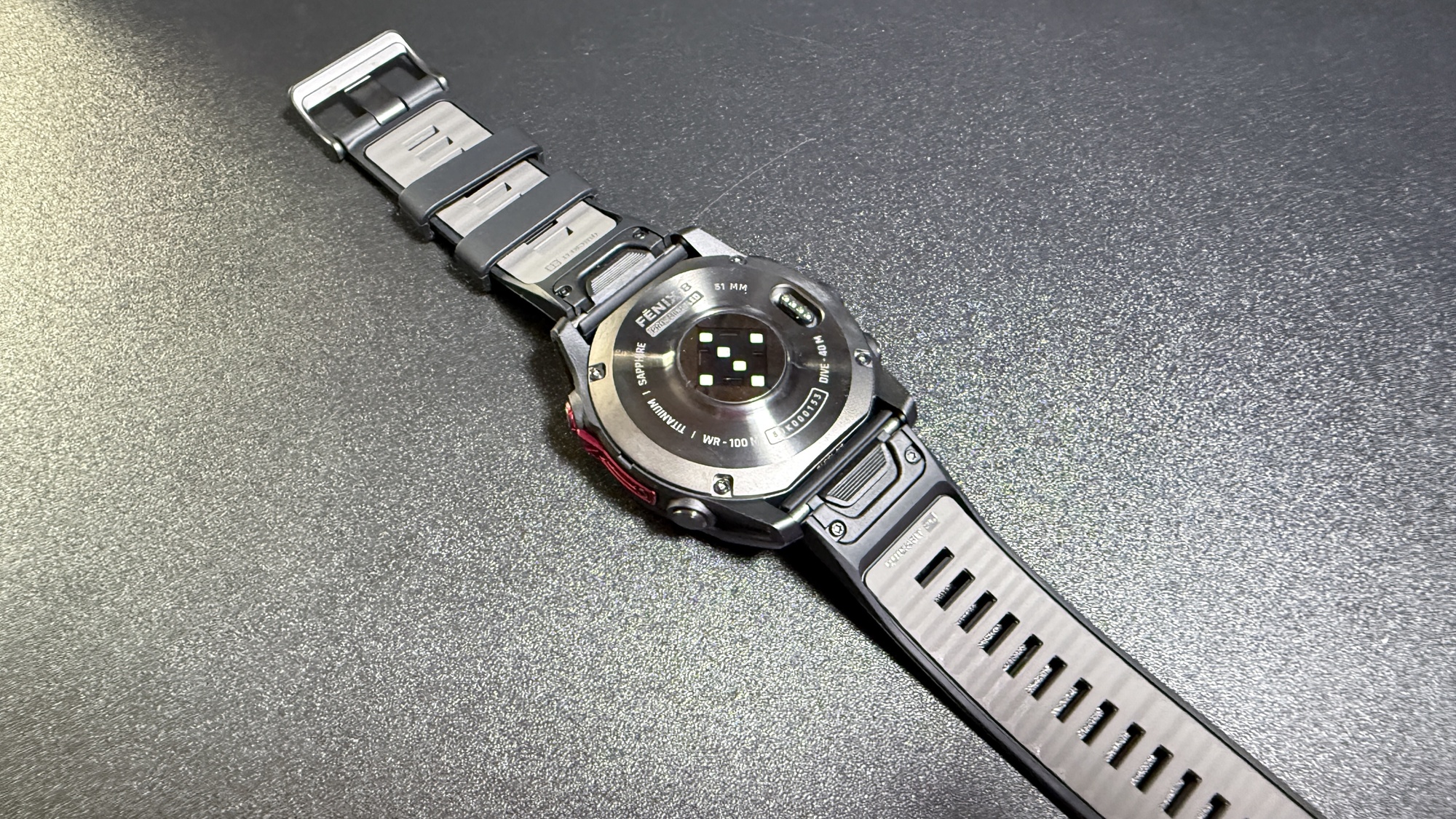 Fenix 8 Pro MicroLED preia ideea clasică a gamei dar, în tandem cu varianta AMOLED, o duce la un nivel superior. Primim corp fabricat din titan și mici părți din polimer ranforsat cu fibră lateral. Ecranul e protejat de cristal safir, iar carcasa e gândită pentru a rezista la „abuzuri” serioase: șocuri, căderi, temperaturi extreme, scufundări în regim 10 ATM (100 metri adâncime).