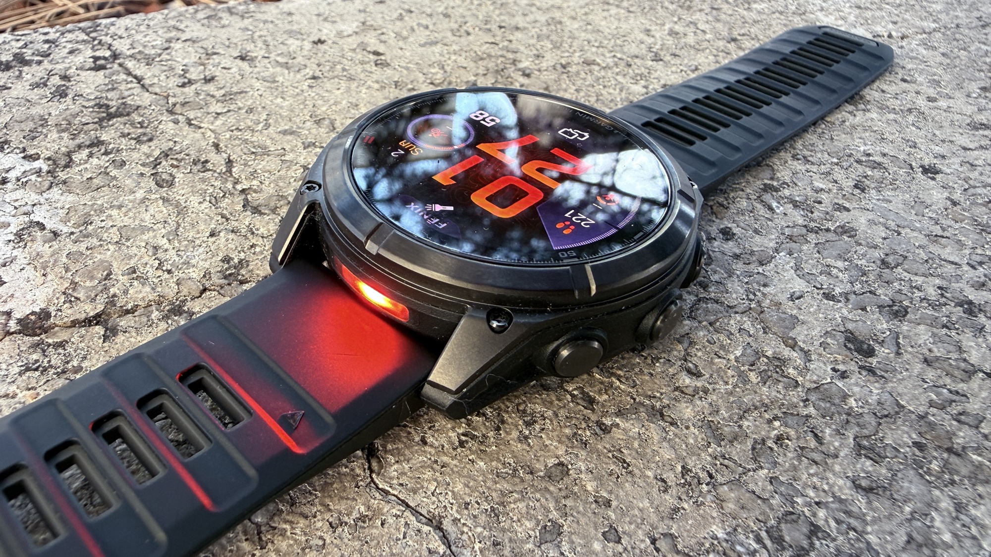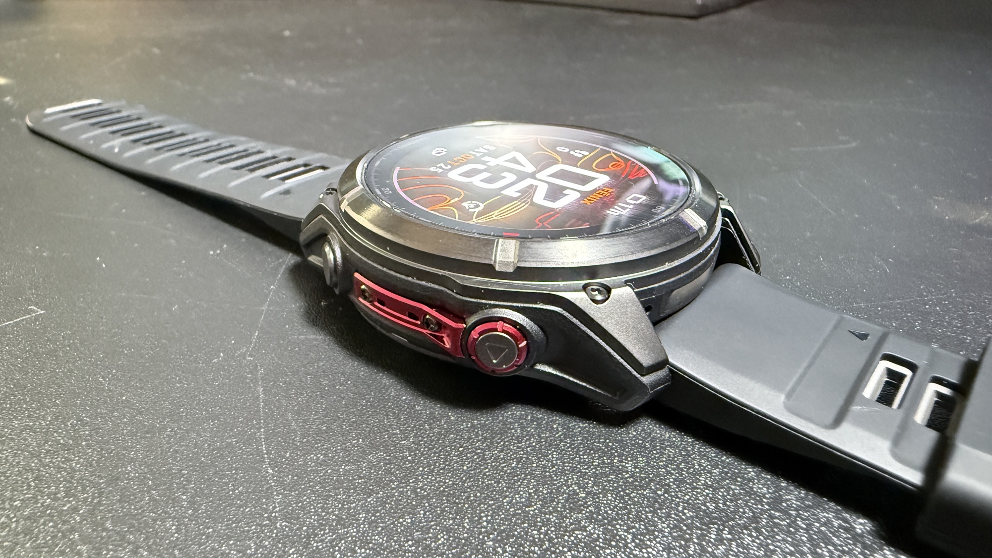Cât despre smartwatch, se simte că e vorba despre un produs de top, gândit pentru aventurieri și sportivi profesioniști. E masiv, dar echilibrat în greutate și transmite clar ideea de rezistență extremă.