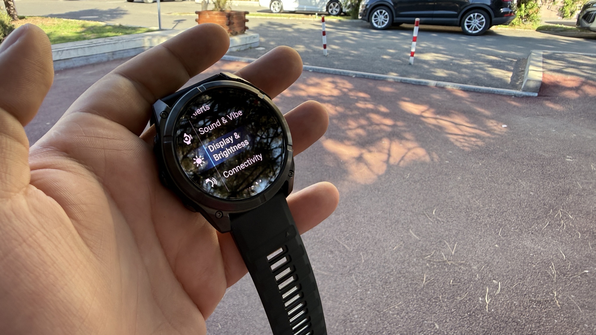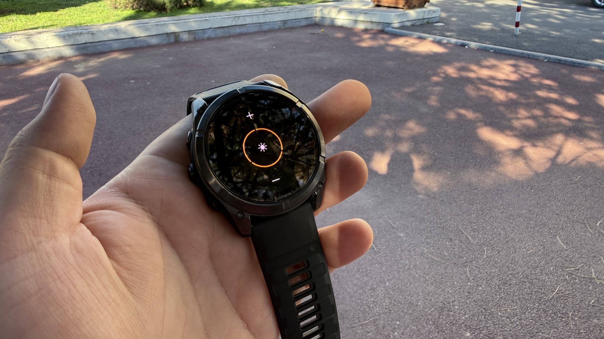 Revenind la Garmin Fenix 8 Pro MicroLED, compania promite o luminozitate de până la 4500 de nits pentru acest panou de 1.4 inch în diametru, ce implică peste 400.000 de LED-uri individuale. Nu avem încă ceață sau ninsoare, dar am prins zile însorite și pot spune că realitatea confirmă cifrele. Ecranul rămâne perfect lizibil, negrul e profund, culorile sunt saturate, dar naturale.