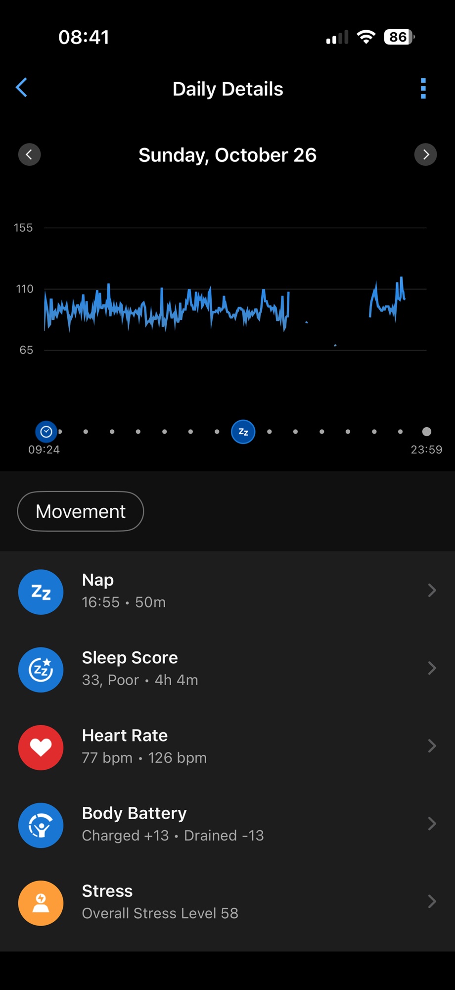 - Training Readiness, care îți spune cât de pregătit ești pentru antrenament în ziua respectivă;