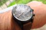 Ce şochează din start e că acele butoane de sub şi deasupra celui crown sunt pur decorative. Da, aţi citit bine, sunt practic nişte şuruburi pe care dacă insişti să le roteşti le pierzi, pentru că vor cădea. Apoi cele 3 cadrane integrate în cel central sunt şi ele de decor, deci nici urmă de cronometru şi data/luna/zi etc. Cureaua ar fi din piele şi ce e drept la prima atingere pare piele, deci aici nu pot obiecta prea mult.