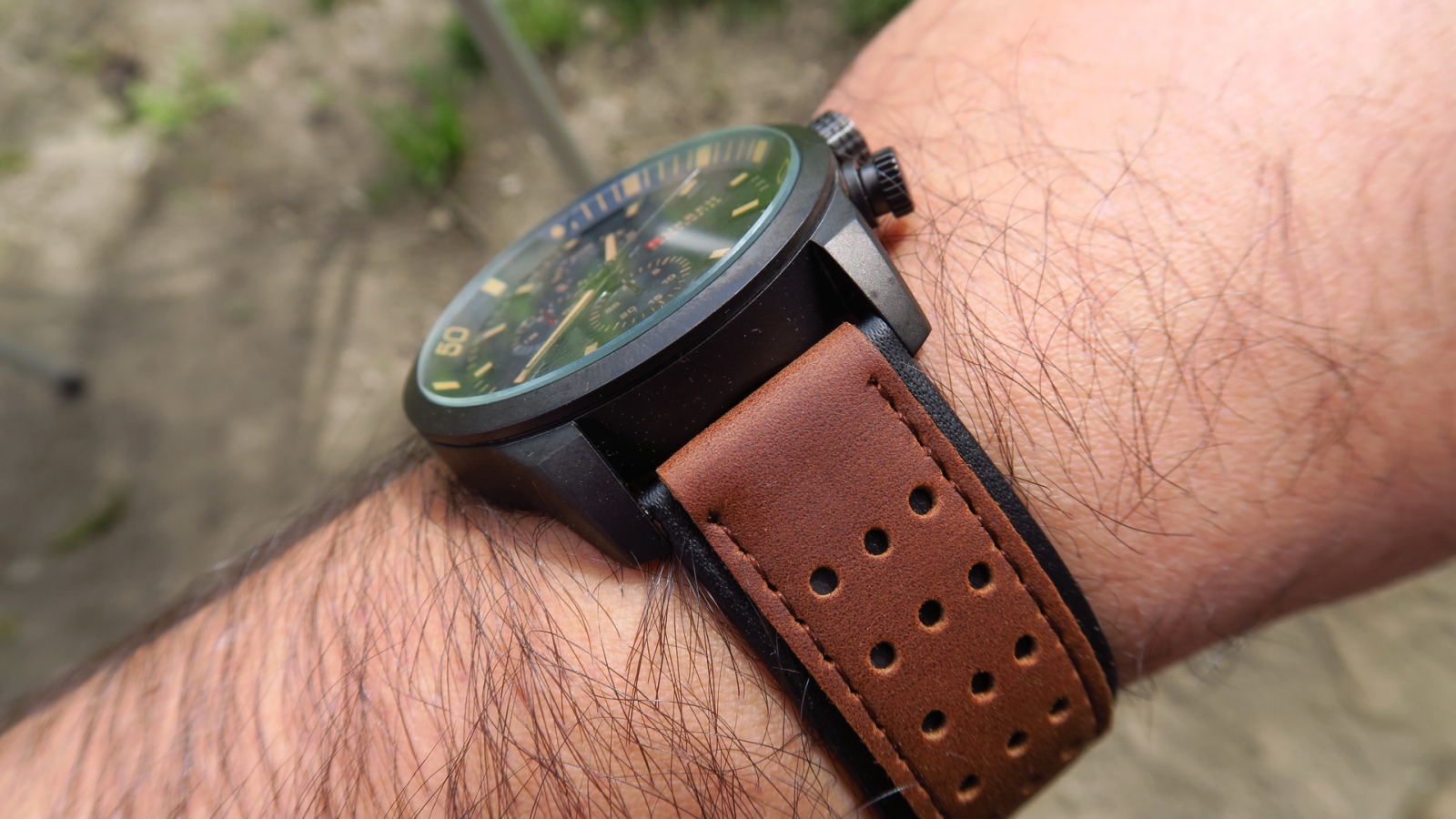 Dacă am fi avut un "pielometru", aşa cum avem luxmetru şi termometru vă spuneam mai multe, dar aşa... Şi nu, nu căutaţi pe Google, nu există "pielometru". Ceasul e comod de purtat la încheietura, destul de masiv şi masculin şi cântăreşte 84 de grame. E rezistent la apă aparent şi ceasul are o curea cu orificii speciale, ce permit pielii să respire.
