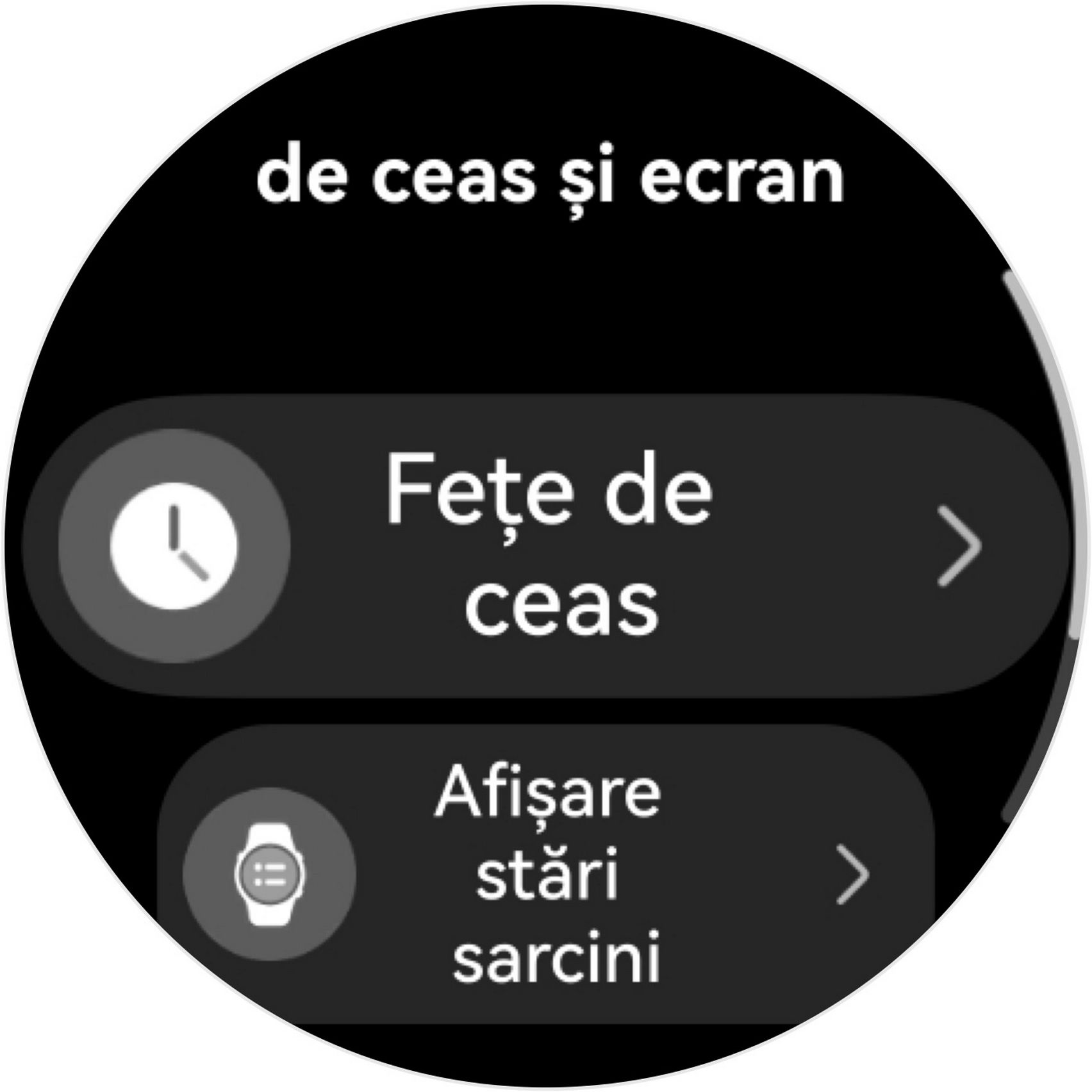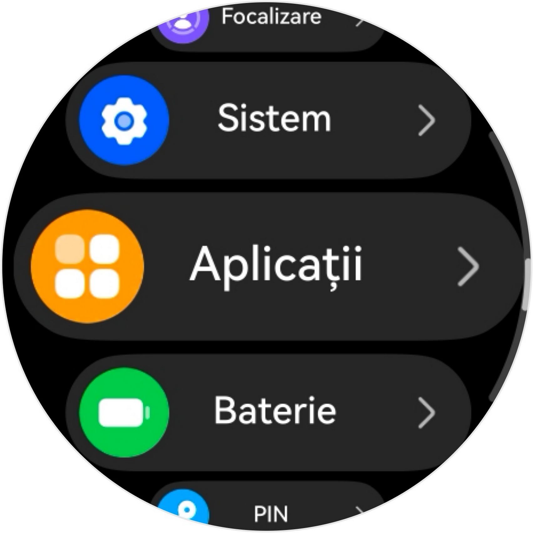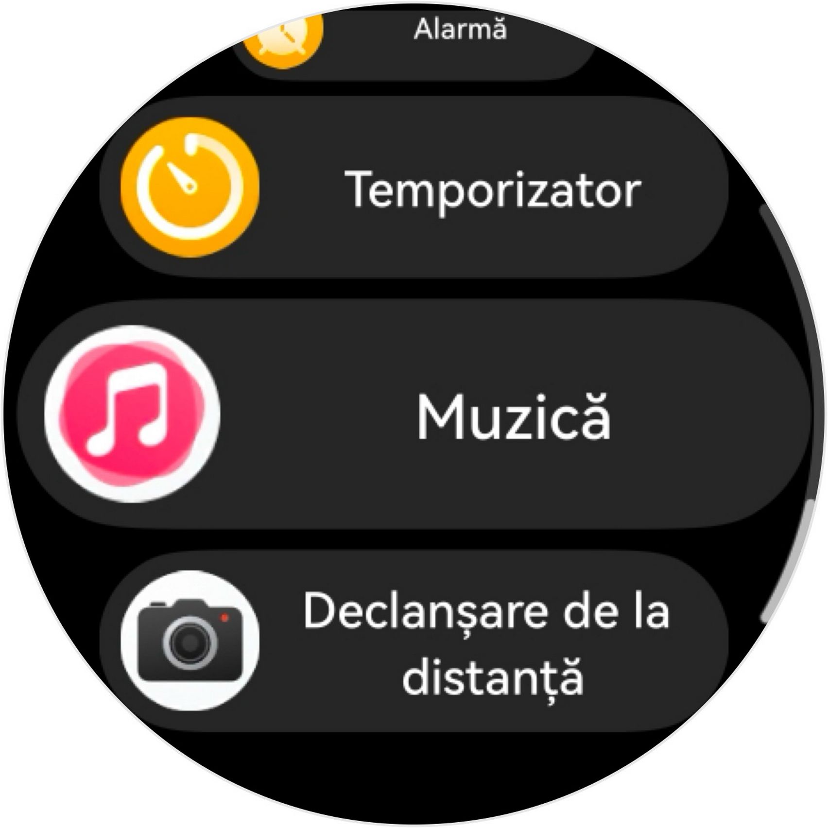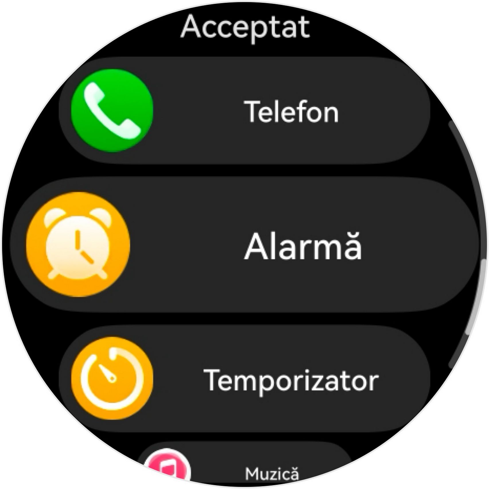 Listă aplicații pe ceas: