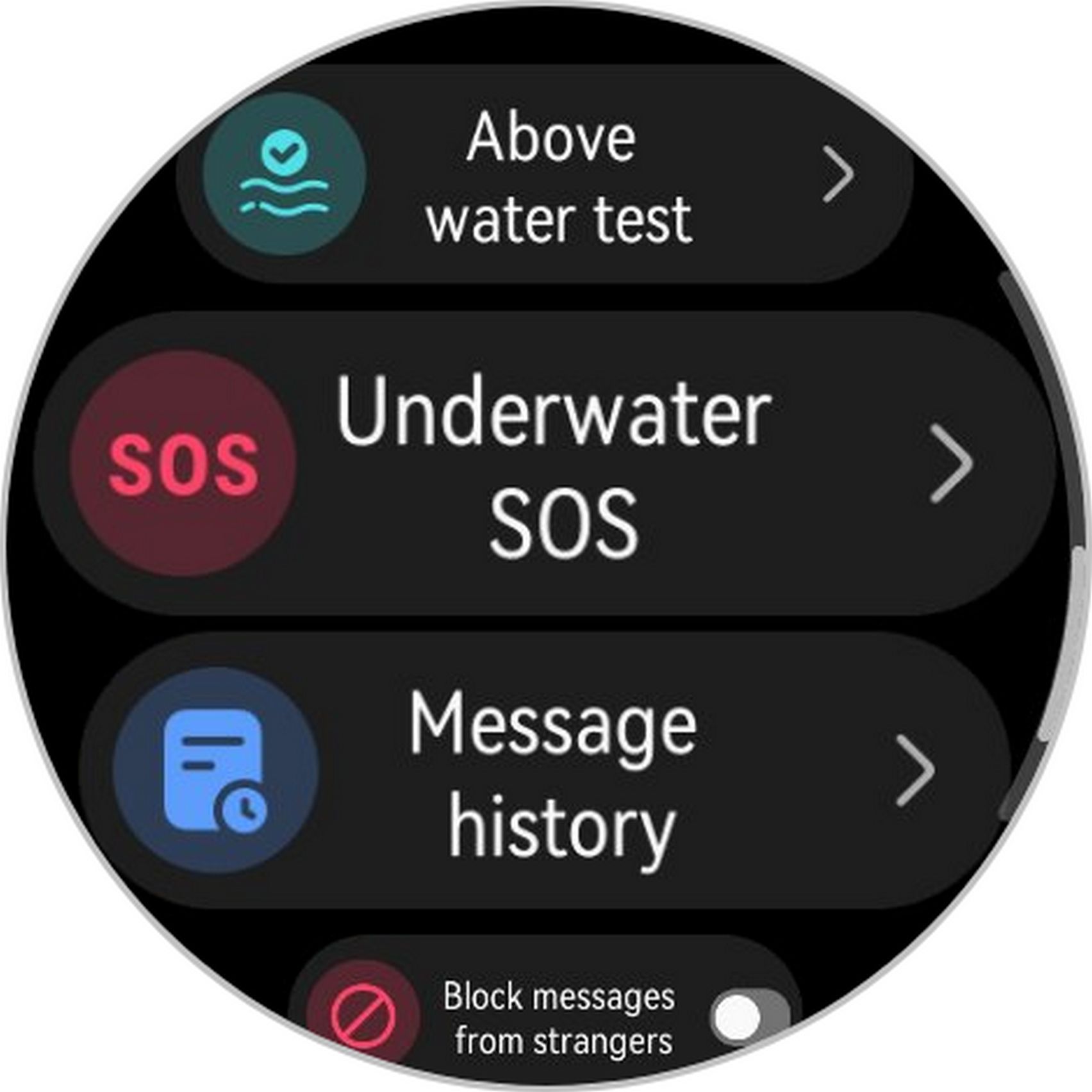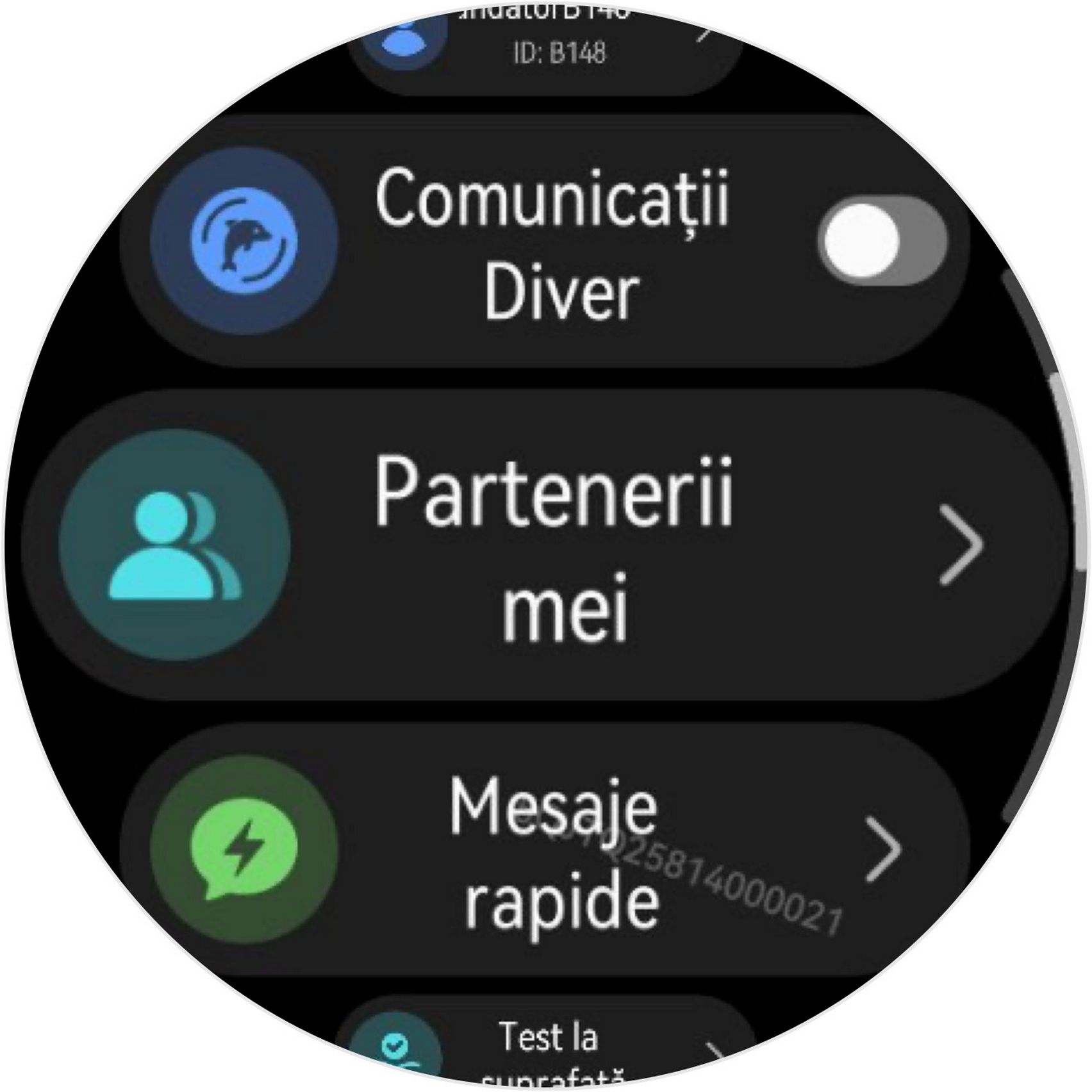 Ceasul se laudă și prin comunicarea subacvatică pe bază de sonar, ideală pentru diving alături de prieteni. Poți trimite mesaje, alerte și chiar emoji-uri către partenerii de scufundare la o distanță maximă de 30 metri. Se pot adăuga până la 50 de membrii, iar mesajele SOS se transmit la maxim 60 de metri. Sub apă e nevoie de comunicare pentru că metodele clasice de comunicare prin semne sau lumini sunt limitate.