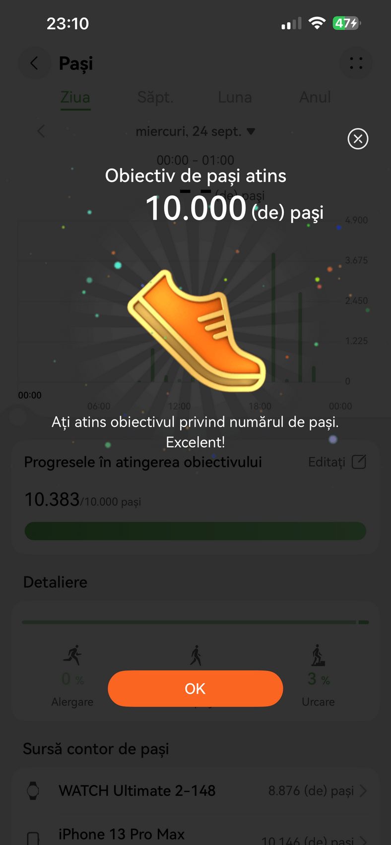 Mi-a plăcut mult este experiența vizuală și modul în care interacționezi. Ecranul AMOLED e superb, luminos și clar, chiar și în bătaia soarelui, iar răspunsul la gesturi e instant. M-am jucat cu multe watchface-uri și am simțit că pot adapta ceasul la orice situație în care m-am aflat, de la elegant la sportiv. Autonomia nu m-a dezamăgit, am prins lejer cam 3-4 zile și sigur că nu se ridică la nivelul fraților GT 6, dar eu zic că e bine.