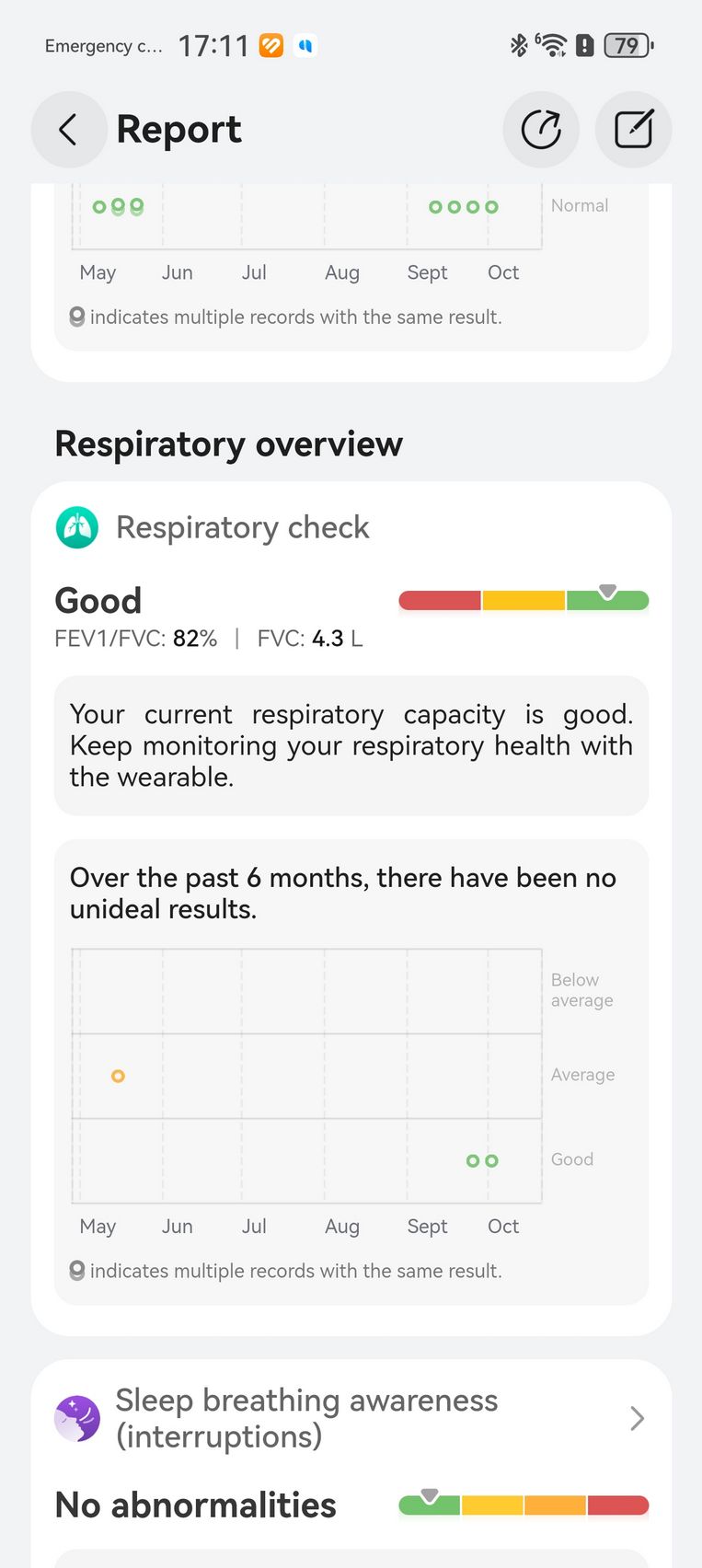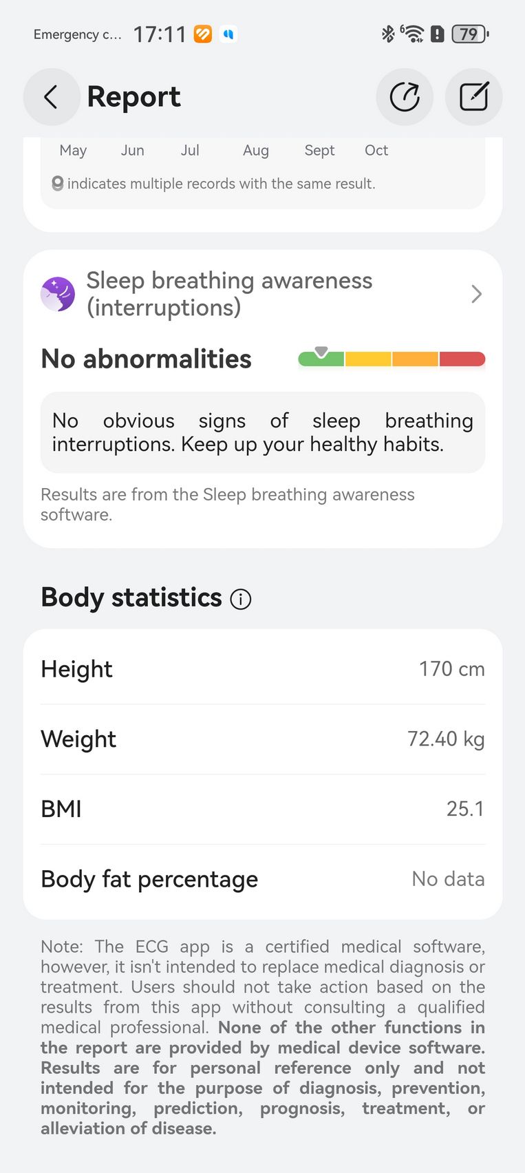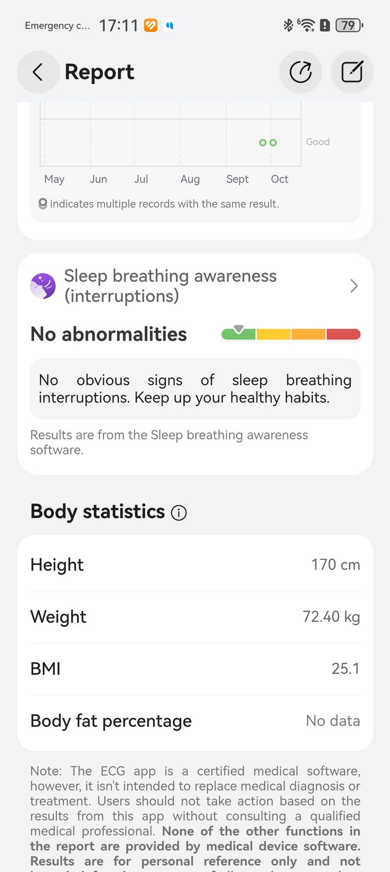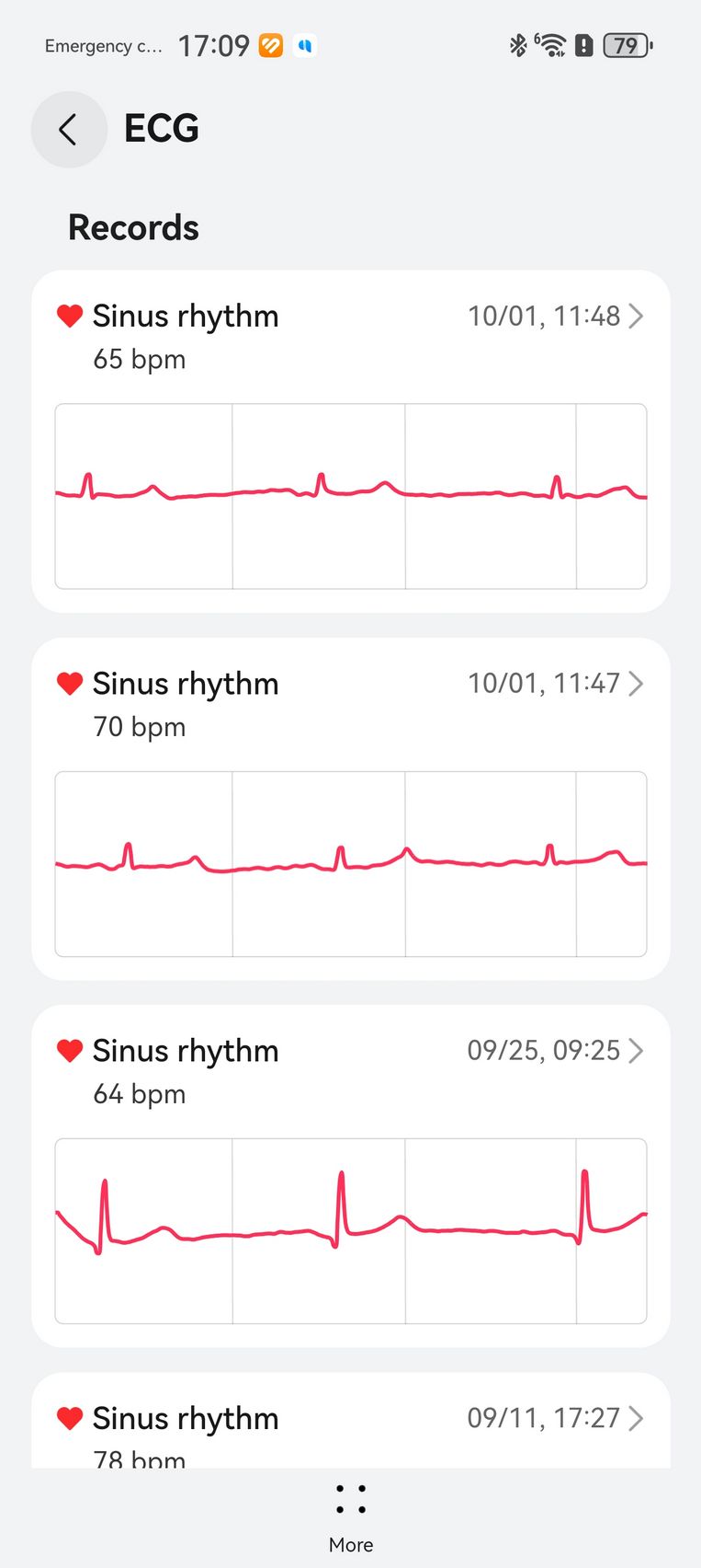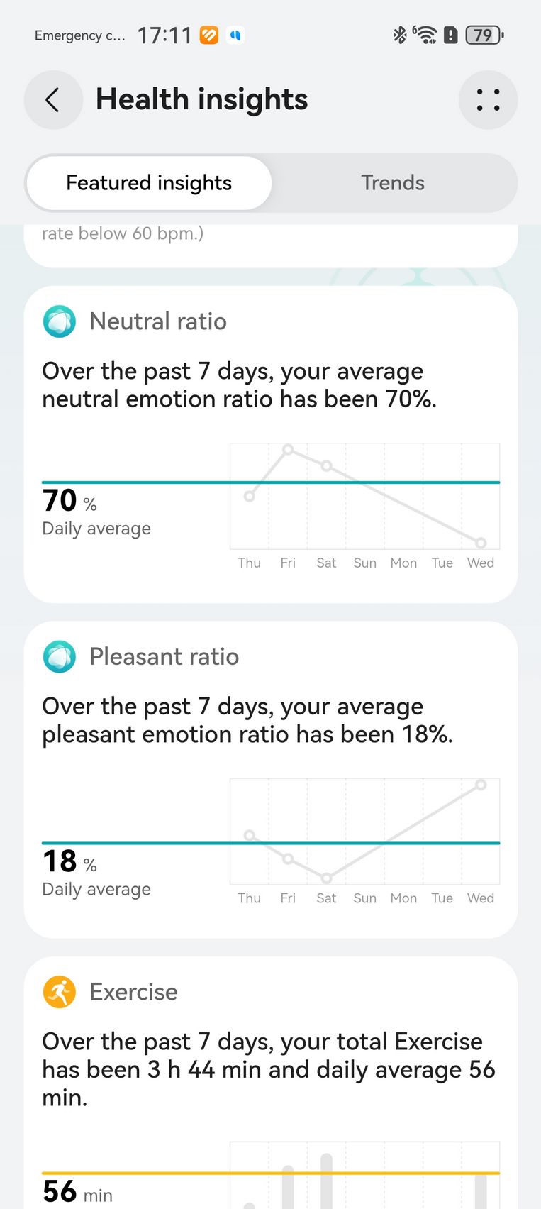 Am aflat pe lângă cum stau cu pulsul, EKG-ul, SpO2-ul și care este starea mea emoțională, care e în strictă legătură cu nivelul de stres. Bunăstarea mea emoțională a fost plăcută, emoții relativ stabile și nivel de stres moderat. Mi-am monitorizat și temperatura la nivelul pielii, HRV-ul și spre final de testare, a venit și aplicația Pulse Wave Arrhytmia Analysis prin care mi-am analizat semnele de fibrilație atrială prin unda pulsului. La măsurătorile care sunt făcute automat nu au fost găsite anomalii.