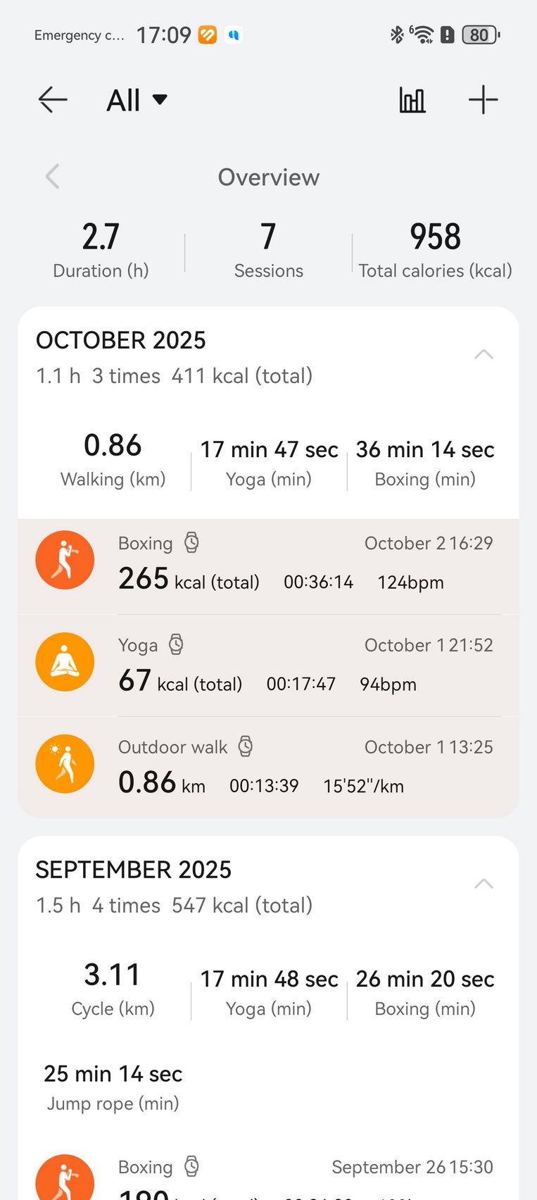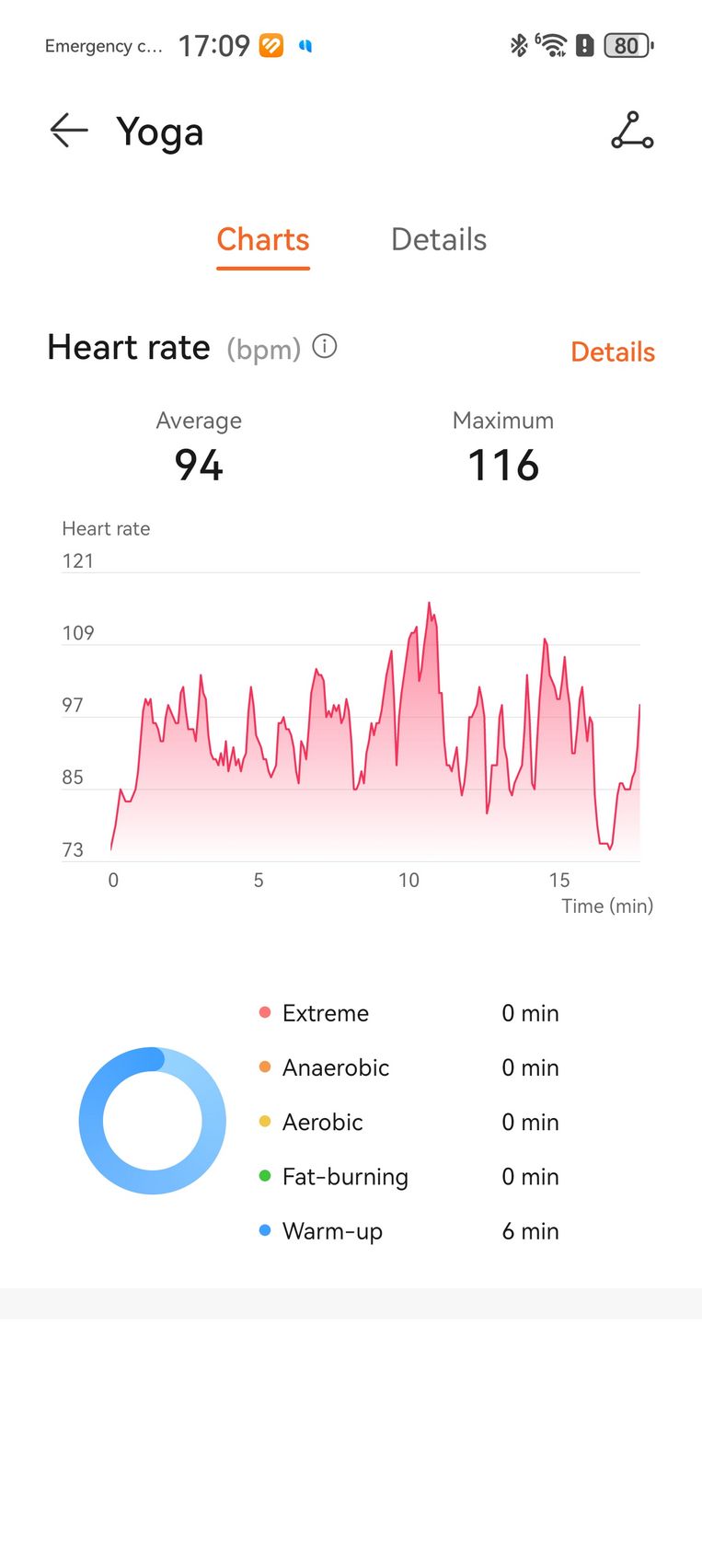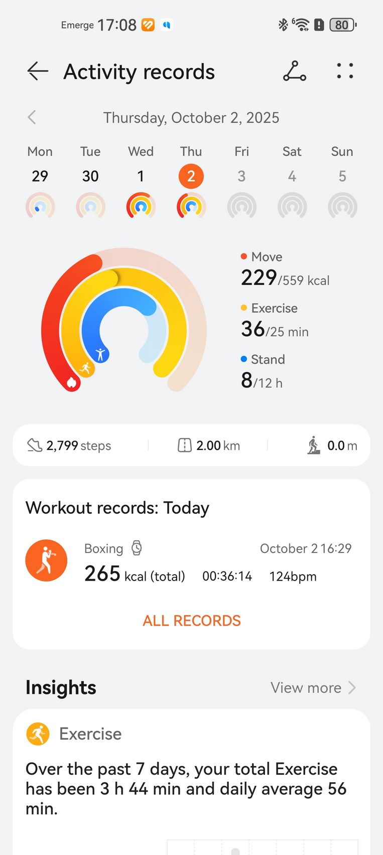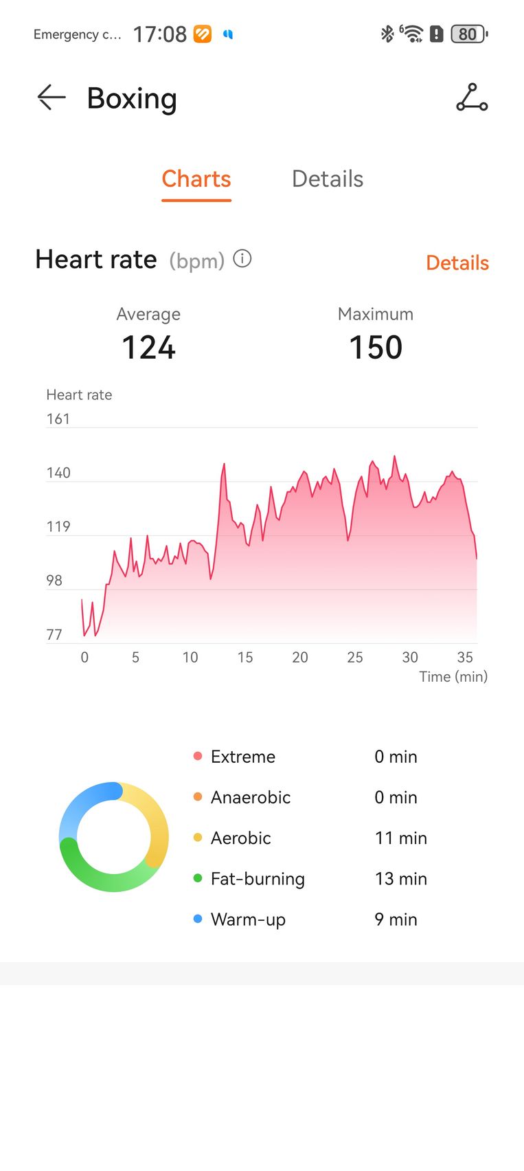 Că tot a venit vorba de ploaie, cum am prins atât de multe zile ploioase, am pus tracking-ul fitness la treabă la interior, de la box cu Nintendo Switch-ul alături și până la yoga. O sesiune de box virtual de cam 30-40 minute a însemnat 265 kcal arse. Pulsul a crescut până la 150 în reprizele alerte, a atins minim 80 și o medie de 124 de bătăi pe minut. Îmi place că graficul de zone de puls îmi arată și cât din timpul de exerciții a însemnat aerobic, cât încălzire și cât ardere de grăsimi.