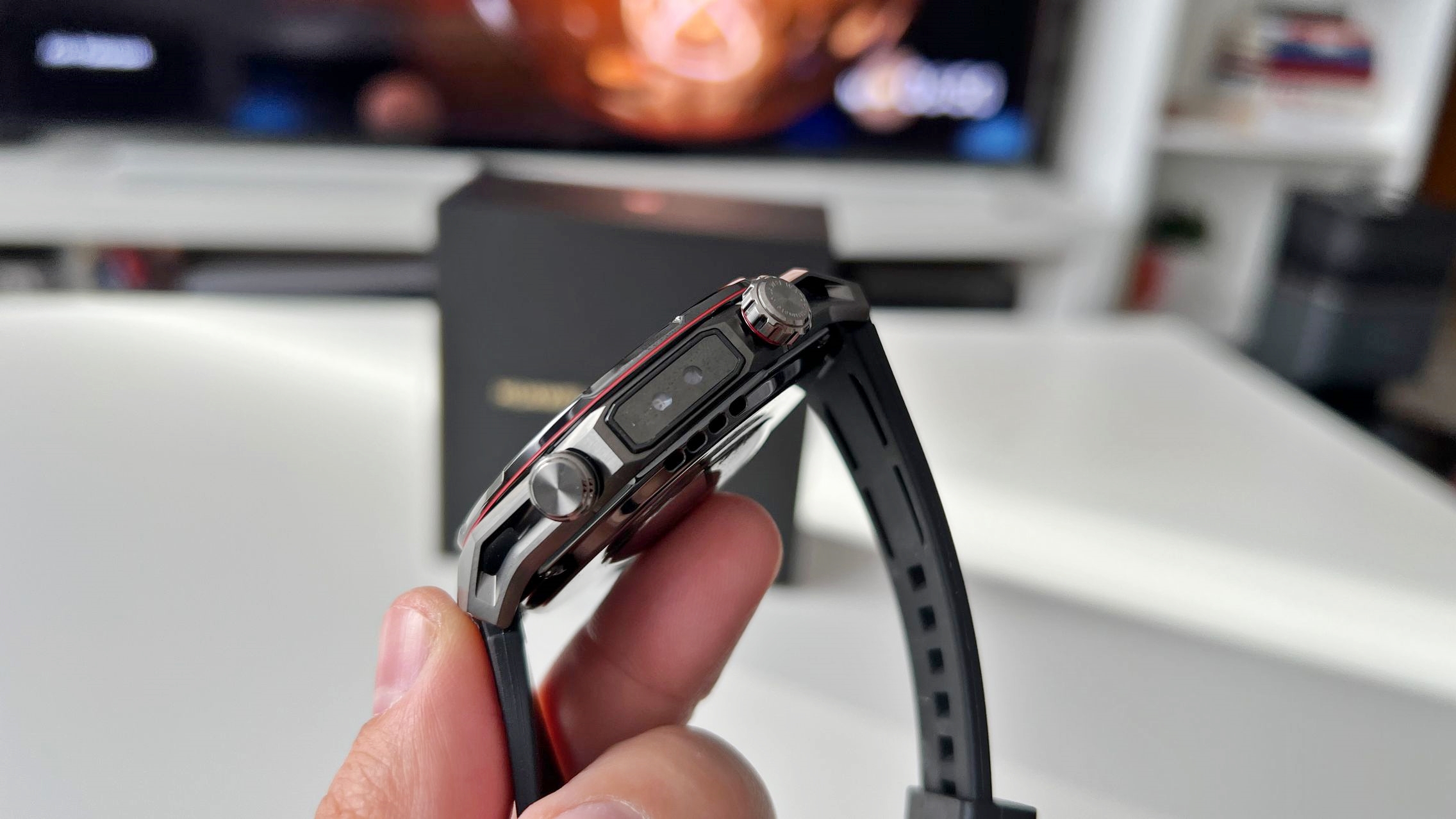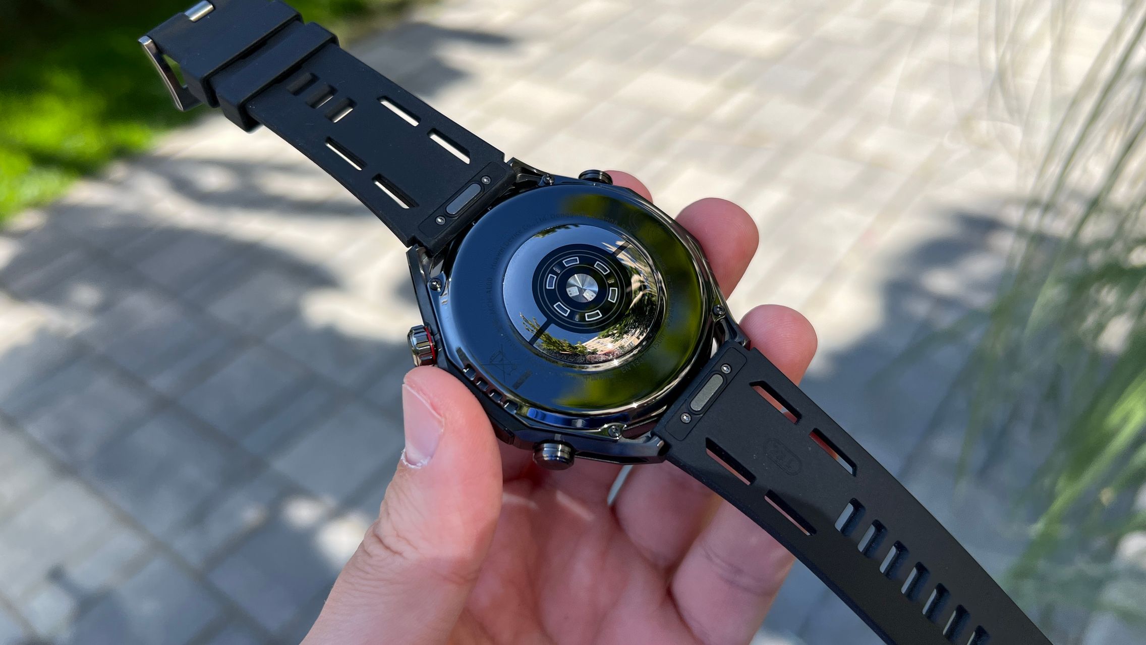Senzorul are un electrod EKG acoperit cu sticlă și un senzor PPG, iar motivul pentru care apreciez atât de mult această soluție este acuratețea. Ceasurile fără X-TAP au senzorii în zona inferioară la contactul cu pielea și părul de pe mână poate interfera și face măsurarea mai complicată și nu atât de precisă.