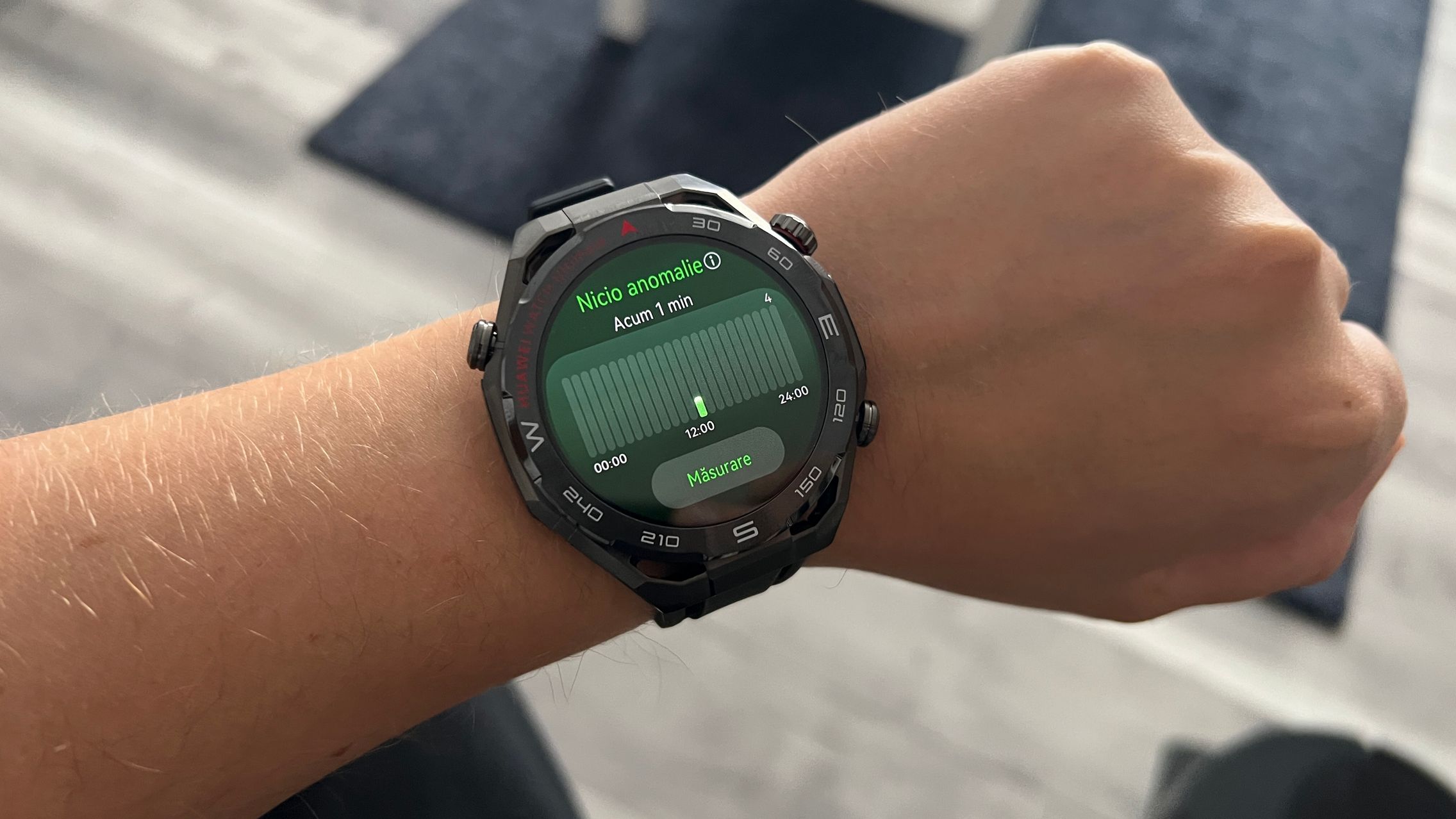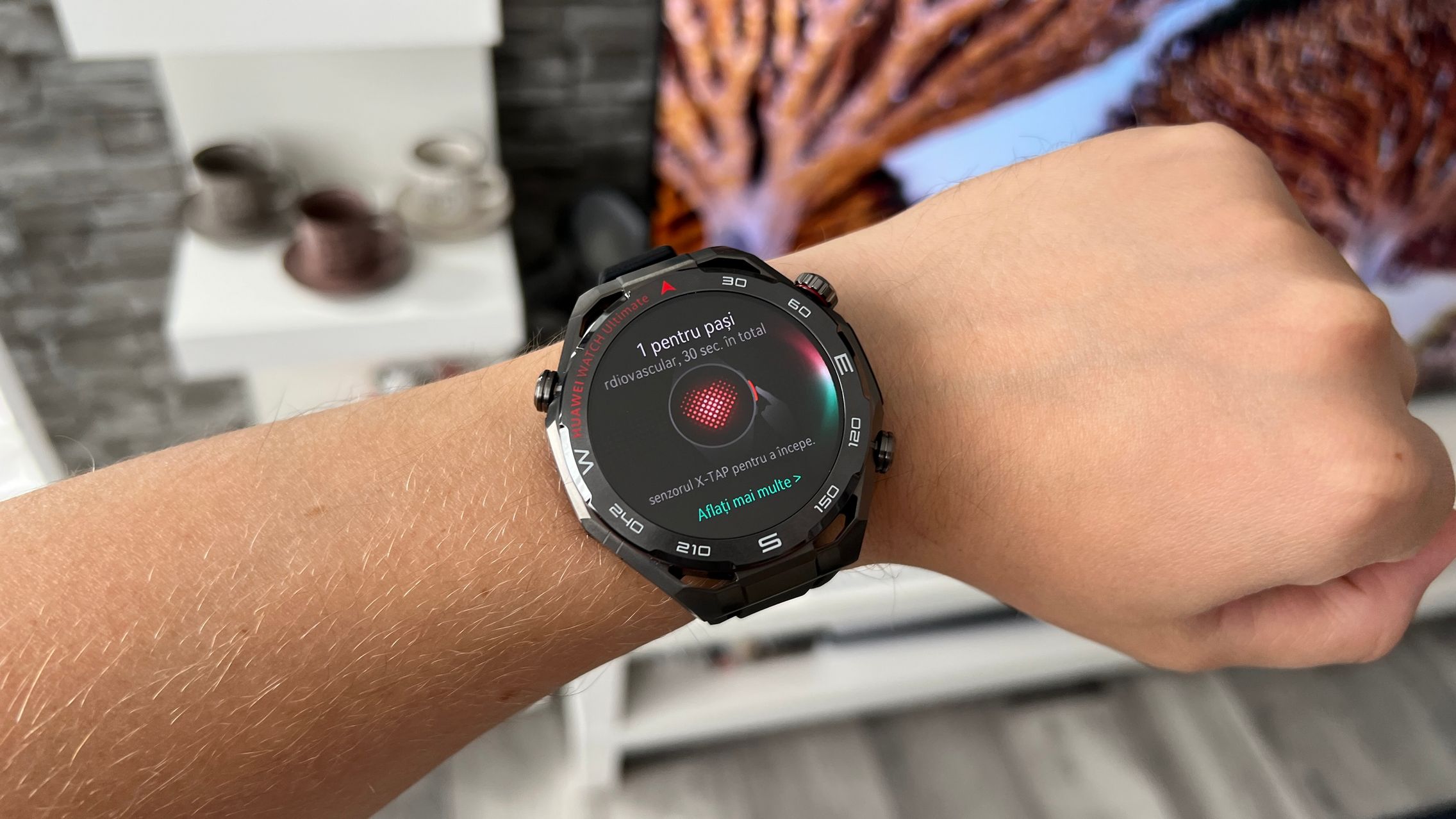 M-am bucurat să regăsesc pe ceasul HUAWEI Watch Ultimate 2 soluția X-TAP anterior testată pe ceasurile Watch 5 42mm și 46mm. Este acel senzor 3 în 1 care combină EKG, PPG (puls) și SpO2, cu măsurarea SpO2 în timp real din vârful degetului. Totul are loc în câteva zeci de secunde și ai analize mult mai rapide. Am încercat să monitorizez și pe fiecare în parte și a durat câteva minute, deci clar scutești timp.