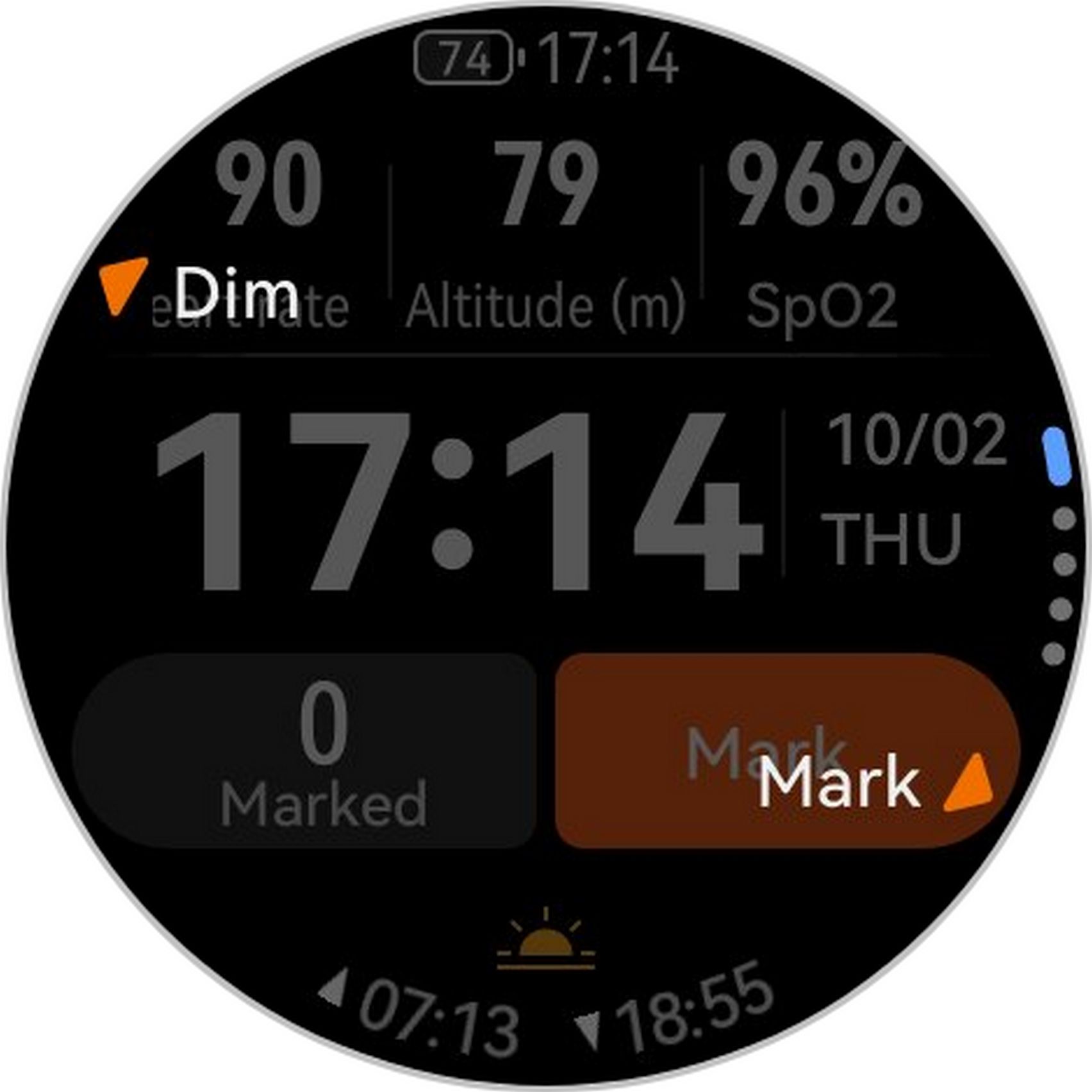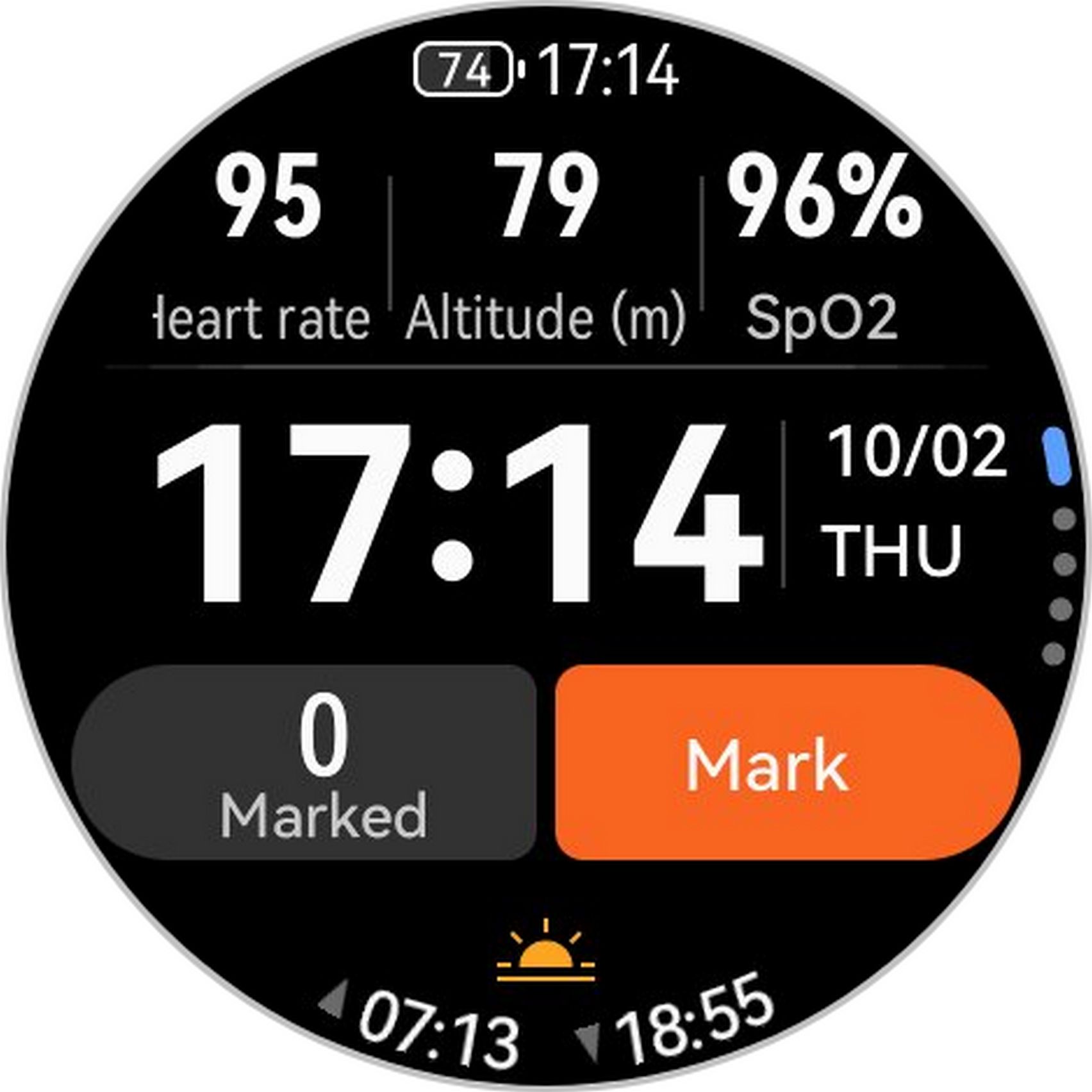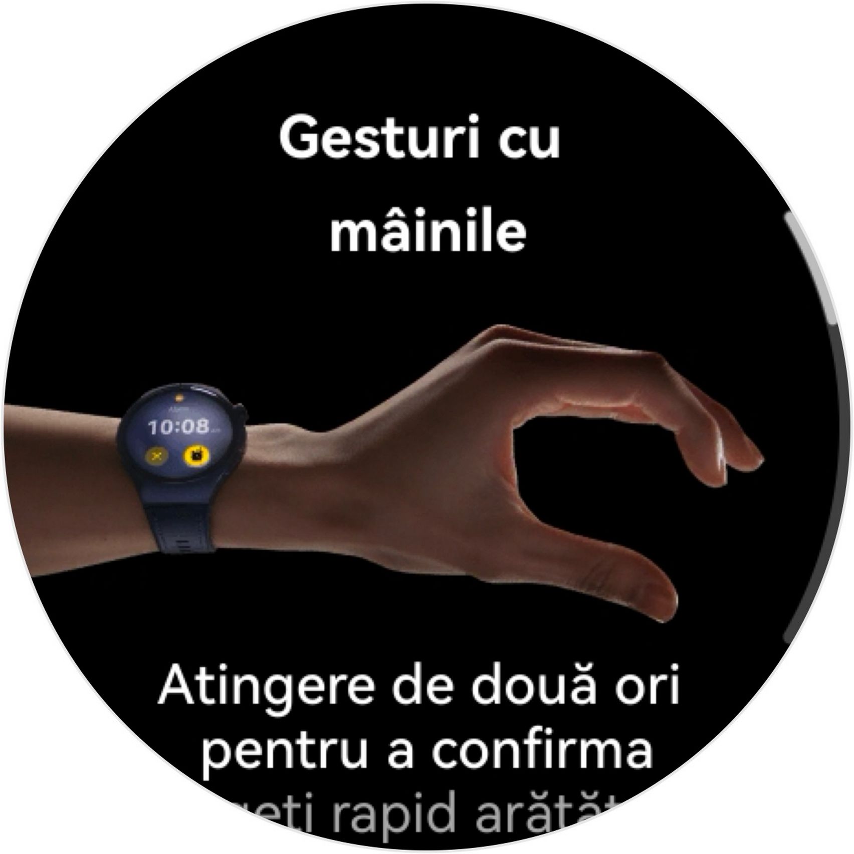 Interacțiunea principală se realizează prin gesturi tactile (swipe, slide, tap), dar ceasul integrează și o rotiță (crown) laterală pe partea dreaptă, care permite navigarea intuitivă printre meniuri și setări. Feedback-ul este lin și roțita pare mai cu greutate față de GT 6. Sub se află un buton secundar cu shortcut-uri către Antrenament, Apelare și Health Glance. Am găsit și un al 3-lea buton fizic, în stânga sus, cel pentru mod Expediție.
