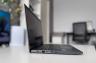 Odată deschis laptop-ul vei descoperi un touchpad generos care integrează și un scanner de amprente, tastatura full size care include și zona NumPad de care un laptop business are neapărată nevoie și mai descoperi și ecranul cu muchii înguste. Panoul de la interior este din policarbonat, cu același finisaj metalic, plăcut la atingere, un detaliu important de luat în considerare ținând că va fi suprafața pe care îți vei odihni mâinile în timpul lucrului la laptop. Această suprafață nu este atât de predispusă la amprente, ba chiar deloc, în comparație cu acel capac frontal metalic.