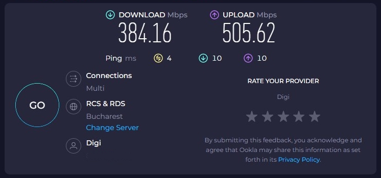 Ce îi lipsește pentru a fi complet, ar fi un cititor pentru carduri SD, dar poți rezolva rapid problema cu un accesoriu dedicat, asta dacă mai ai nevoie de un asemenea feature. Am realizat și un test de conectivitate WiFi, cu viteze de până la 400 Mbps la download și peste 500 Mbps atinși la upload, folosind o bandă Fiberlink 500 de la Digi.