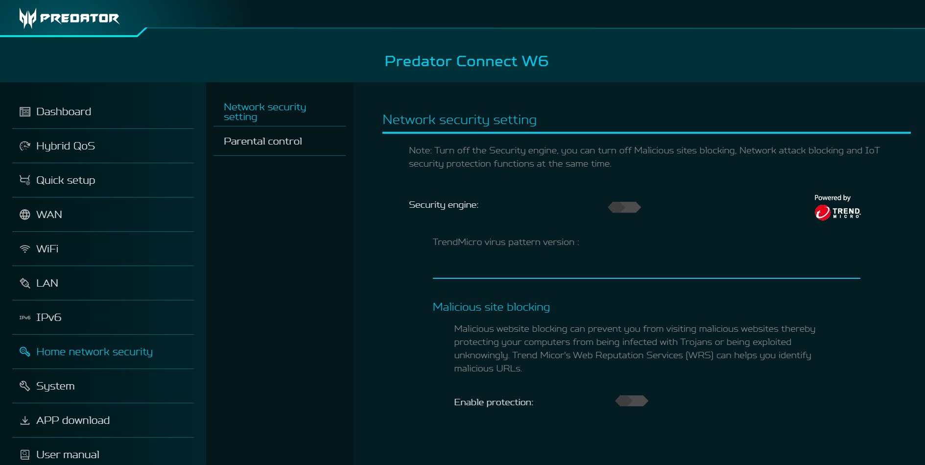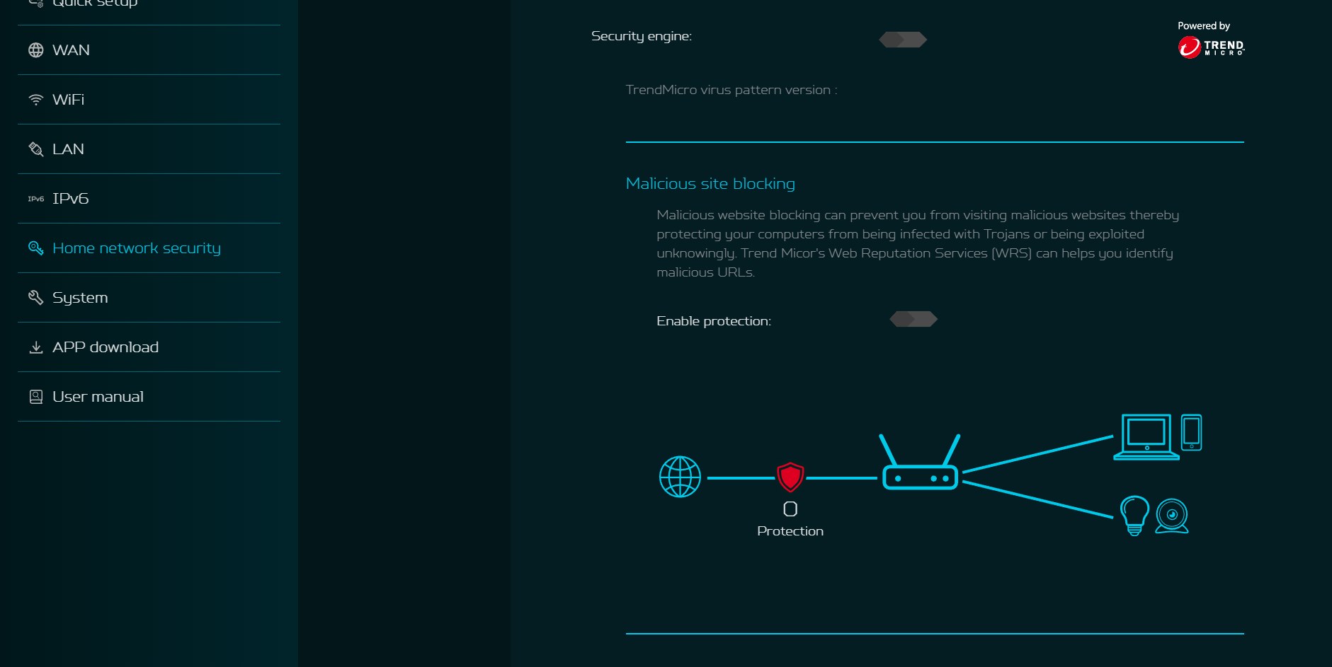 Avem bifat și Trend Micro Home Network Security, care se referă desigur la protecție. Un motor dedicat de securitate care te va proteja de potențiale atacurile ale rețelei prin IoT Security Protection, iar la nevoie ai și control parental pentru a impune limite.