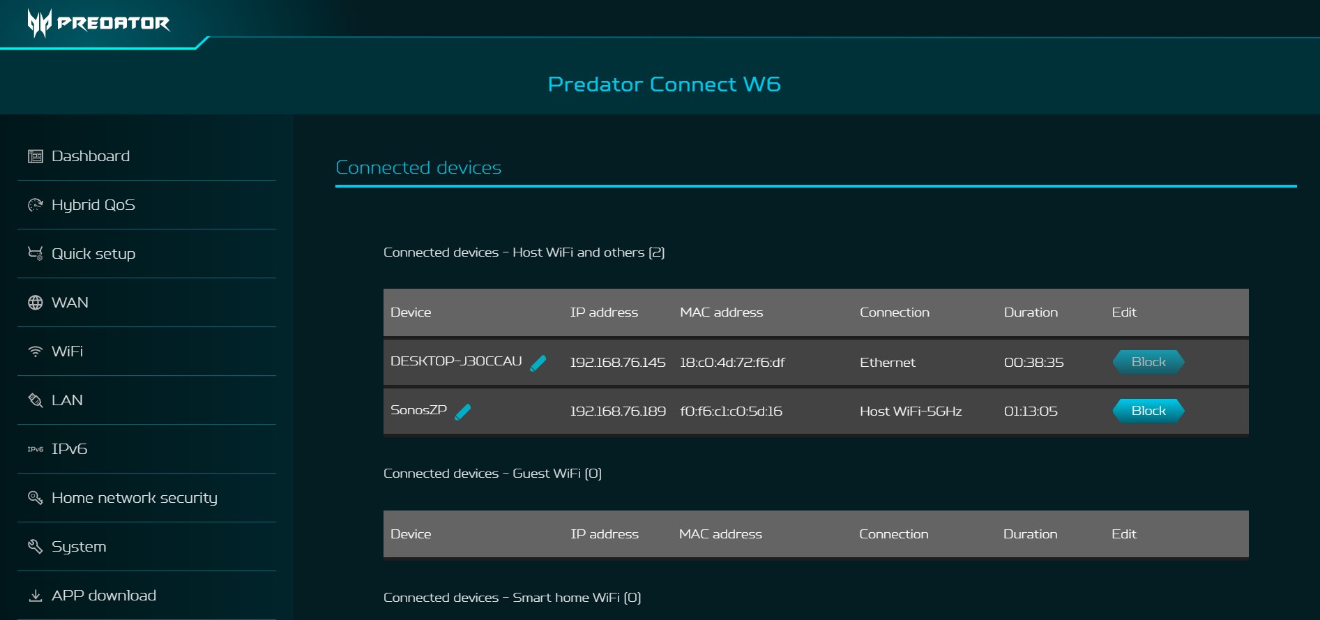În platforma web Acer Connect, odată logat ai toate datele la dispoziție dintr-un singur loc, de la starea conexiunii, la date despre durata de funcționare, detalii despre device-urile conectate la rețea. Poți da prioritate anumitor dispozitive, de exemplu PC-ului atunci când te joci, iar legat de lista cu device-uri conectate, la nevoie le poți da block. Sunt o mulțime de opțiuni și setări și nu cred că o să îți lipsească nimic din ce cauți sau ai nevoie. Din punctul acesta de vedere, este mai mult decât completă experiența de customizare.