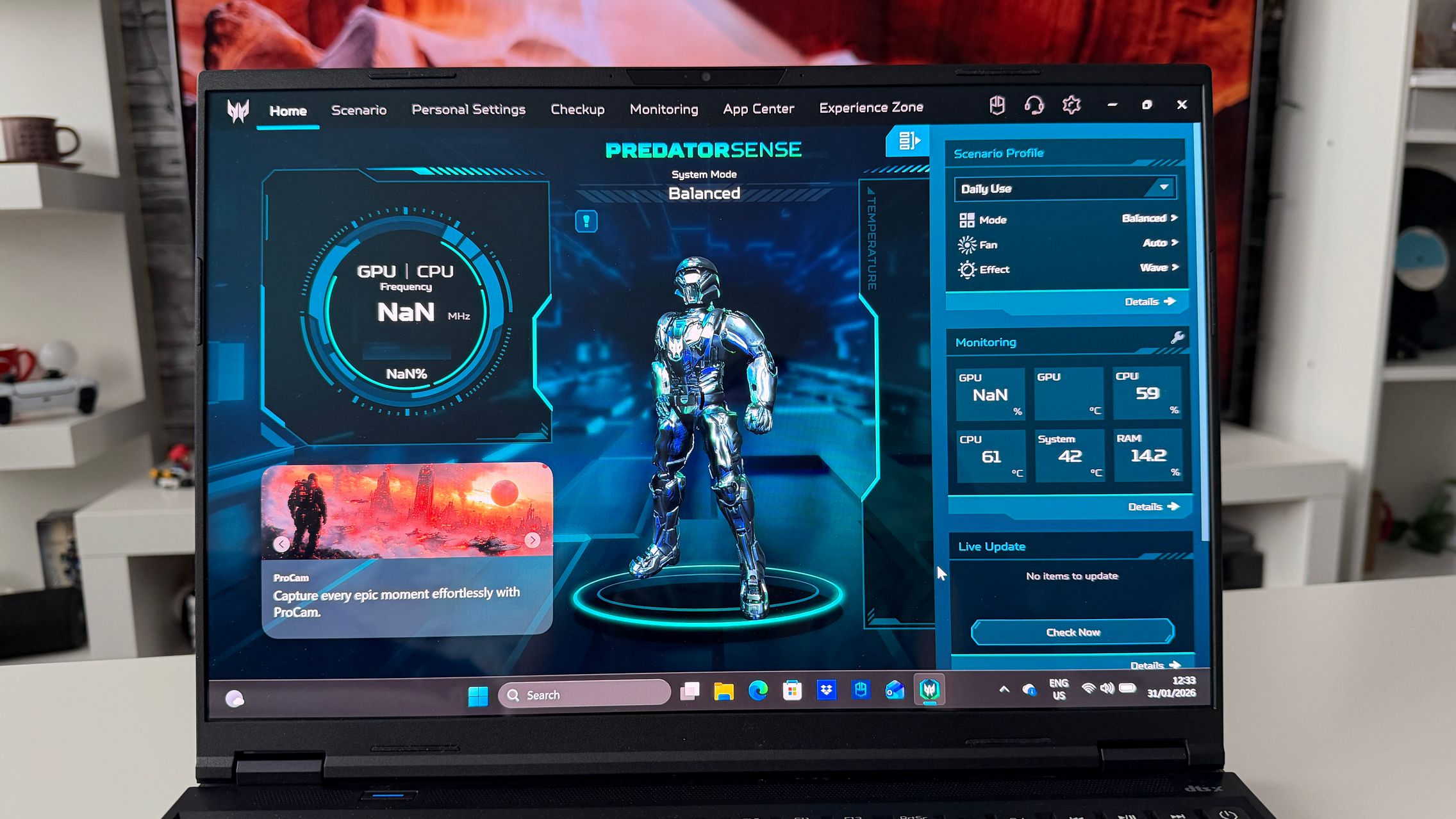 Trebuia ca ACER să aducă și o soluție de răcire superioară și asta a făcut aici, cu un sistem avansat de răcire ce folosește ventilatoare 3D AeroBlade de a 5-a generație, cu liquid metal și un flux de aer de înaltă precizie. Totul se controlează din aplicația PredatorSense, cu opțiuni de performanță, viteză cooler, iluminare RGB. Există și Experience Zone cu opțiuni AI pentru framing automat în cameră sau îmbunătățire voce în streaming.
