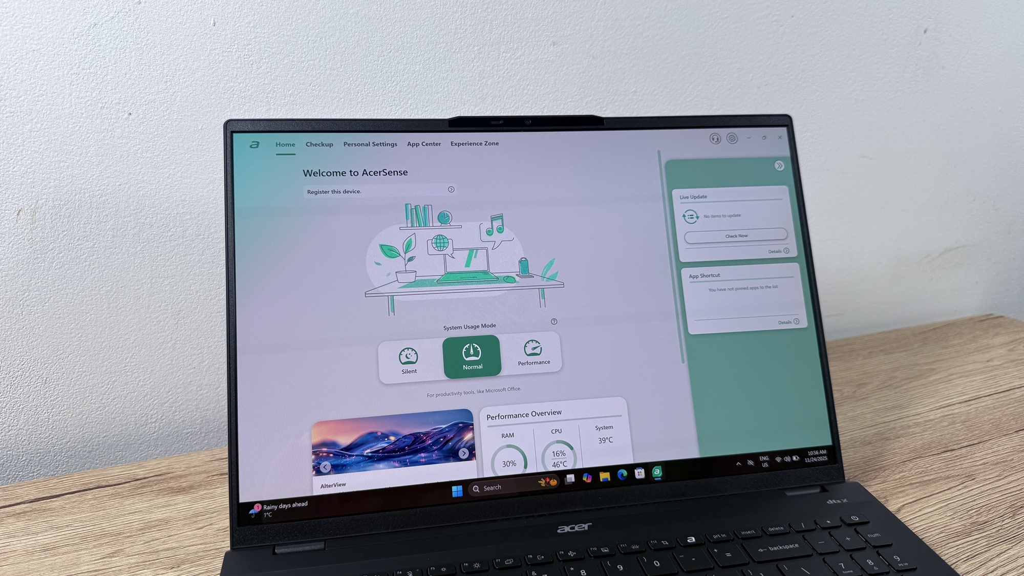 Procesorul V-series nu este gândit pentru gaming avansat sau pentru randare profesională, dar pentru un utilizator de productivitate, creativitate ușoară sau multimedia, este exact ce trebuie. Avem o surpriză și pe partea de răcire. Ventilatorul rămâne foarte silențios chiar și în sarcini mai complexe de lucru, iar laptopul nu prea se încălzește. Acer a lucrat bine la disiparea termică.