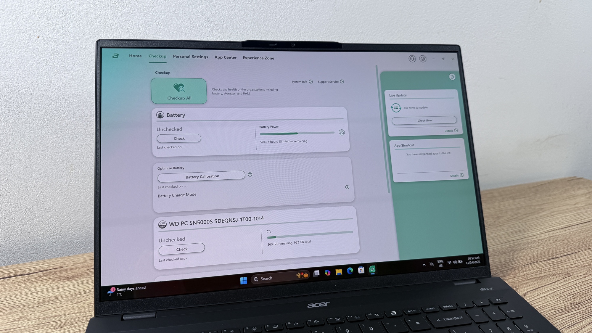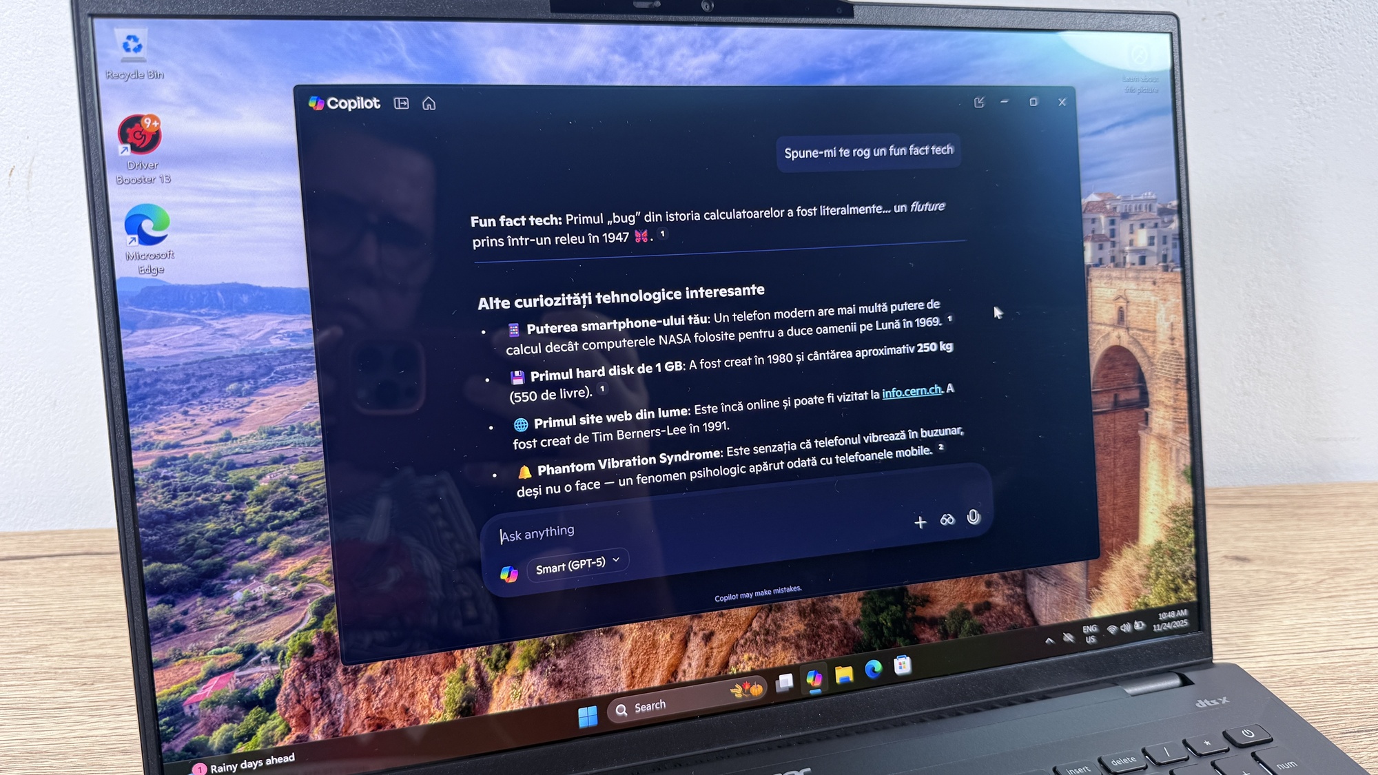 Trecem apoi la Acer Assist, o aplicație AI care rulează local pe device și te ajută să cauți printre fișiere și să faci rezumate pentru anumite documente încărcate. Tot acest tool te va ajuta dacă întâmpini probleme în funcționarea laptopului. Foarte important de menționat e AcerPurified View și Acer PurifiedVoice, tool-uri ce îți vor fi alături în conferințele video la care participi.