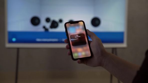 Funcția smart care ne-a atras cu adevărat atenția a fost conectarea rapidă a telefonului cu televizorul The Serif. Astfel o simplă atingere dintre smartphone și suprafața superioară a televizorului, duce la o redare automată a conținutului audio/video/foto direct pe ecranul televizorului.