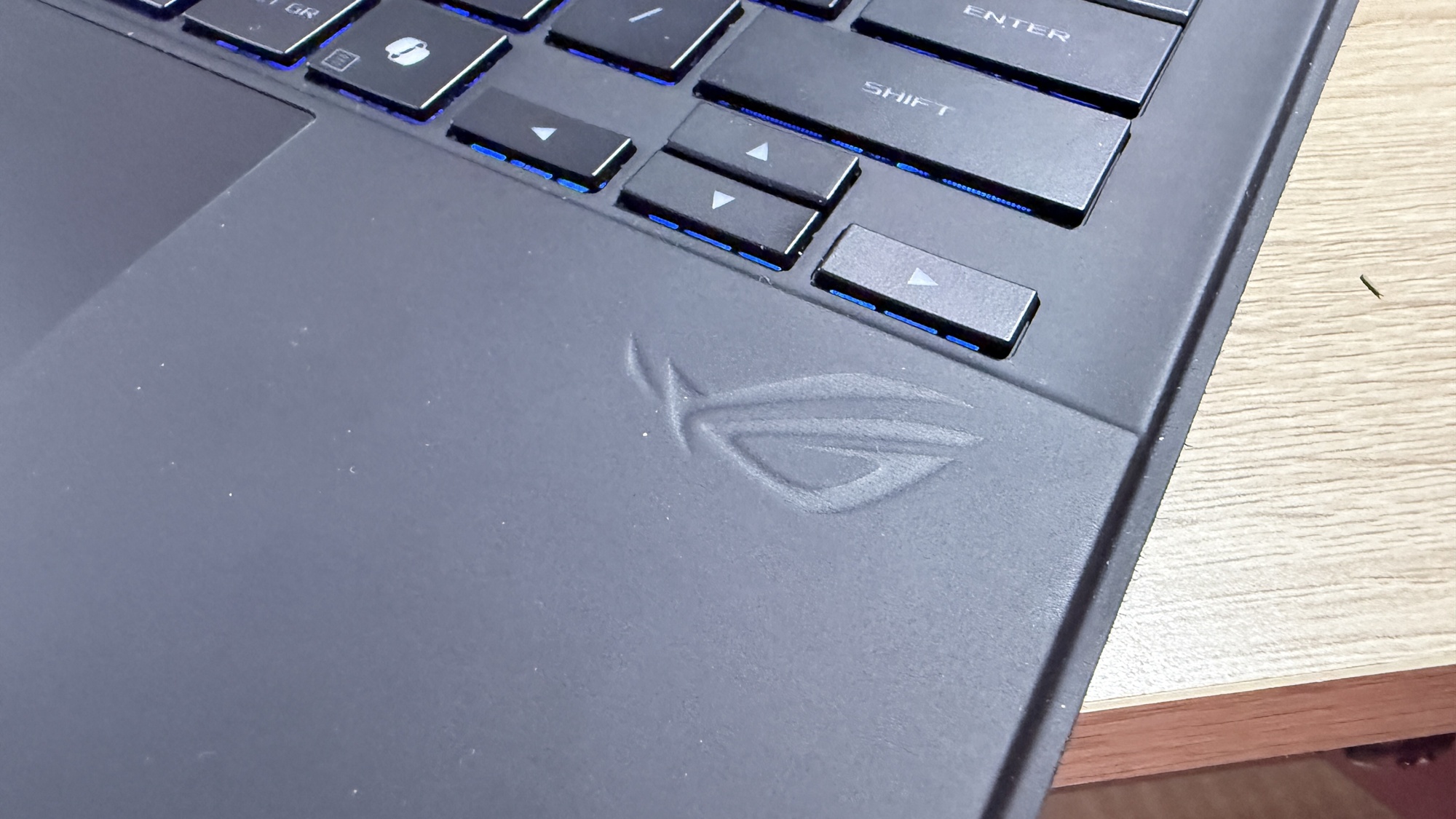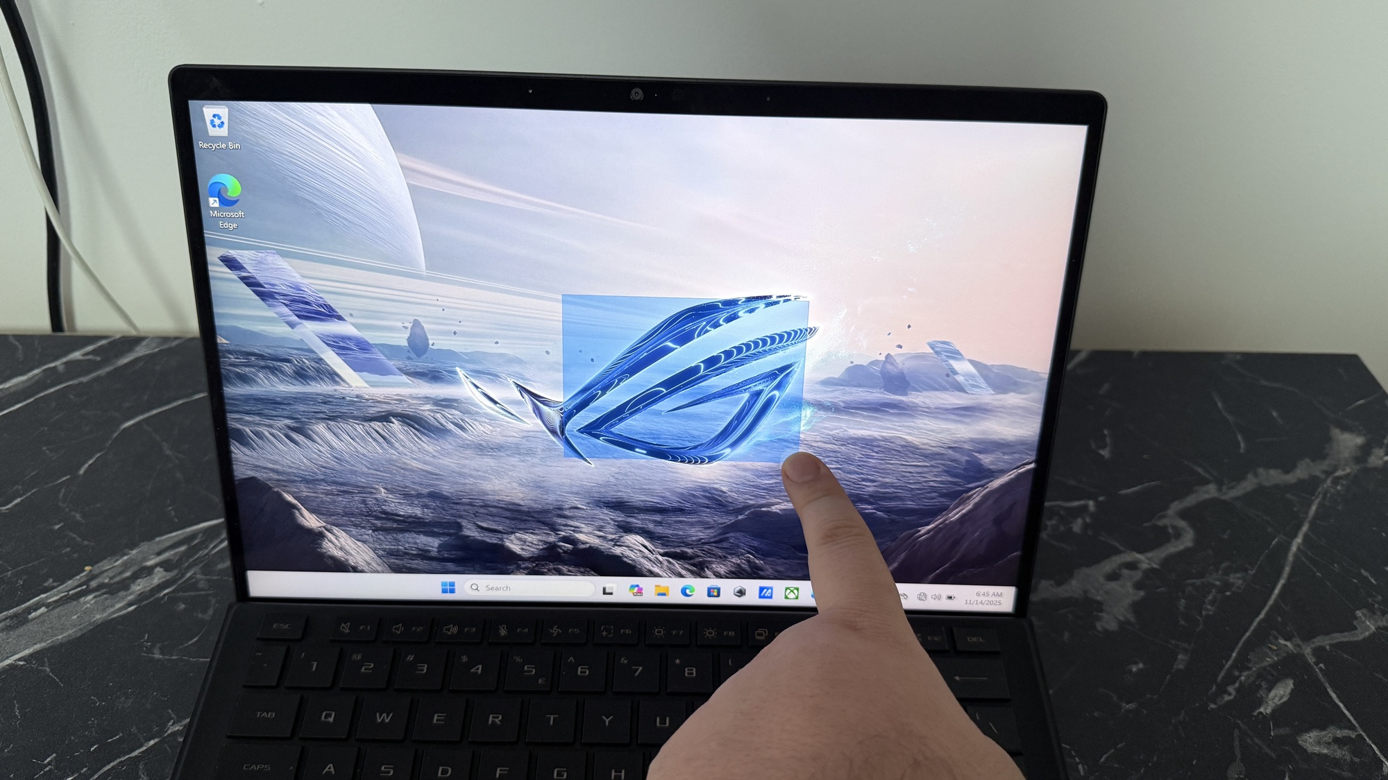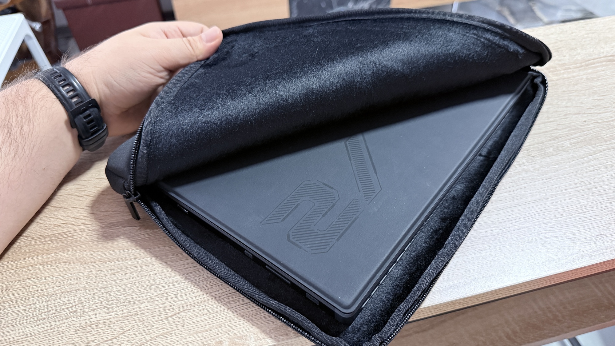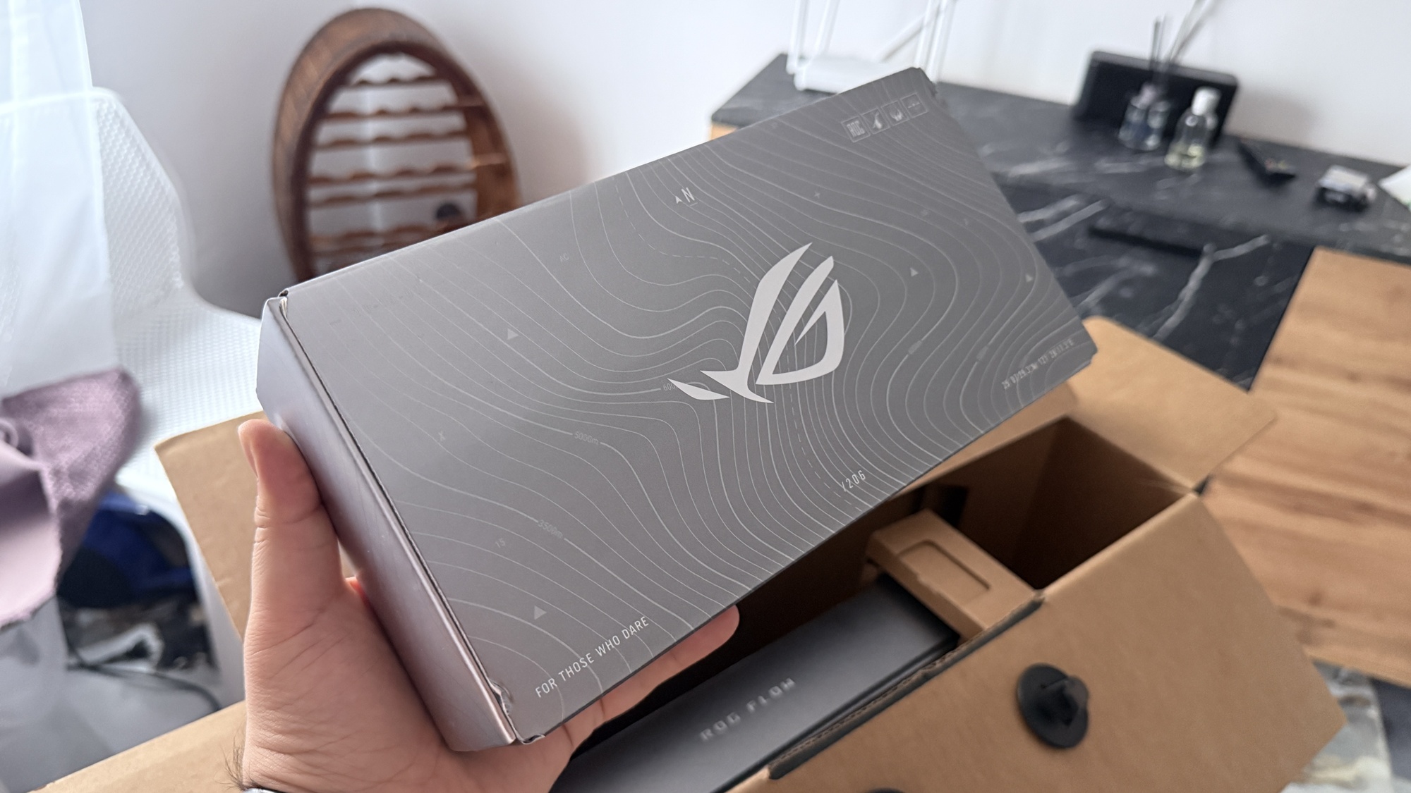 Când conectăm device-ul la priză zona aduce iluminare AURA Sync. Acest lucru pune device-ul în evidență atunci când te joci și îi „avertizează” pe cei din jur că ești prins într-o sesiune intensă de gaming. E un dispozitiv compact, mai greu decât o tabletă obișnuită, dar clar mai ușor decât un laptop de gaming. Asta se simte în timpul transportului, mai ales dacă nu mai ești nevoit să iei cu tine o tabletă pentru multimedia, respectiv un laptop pentru muncă on-the-go.